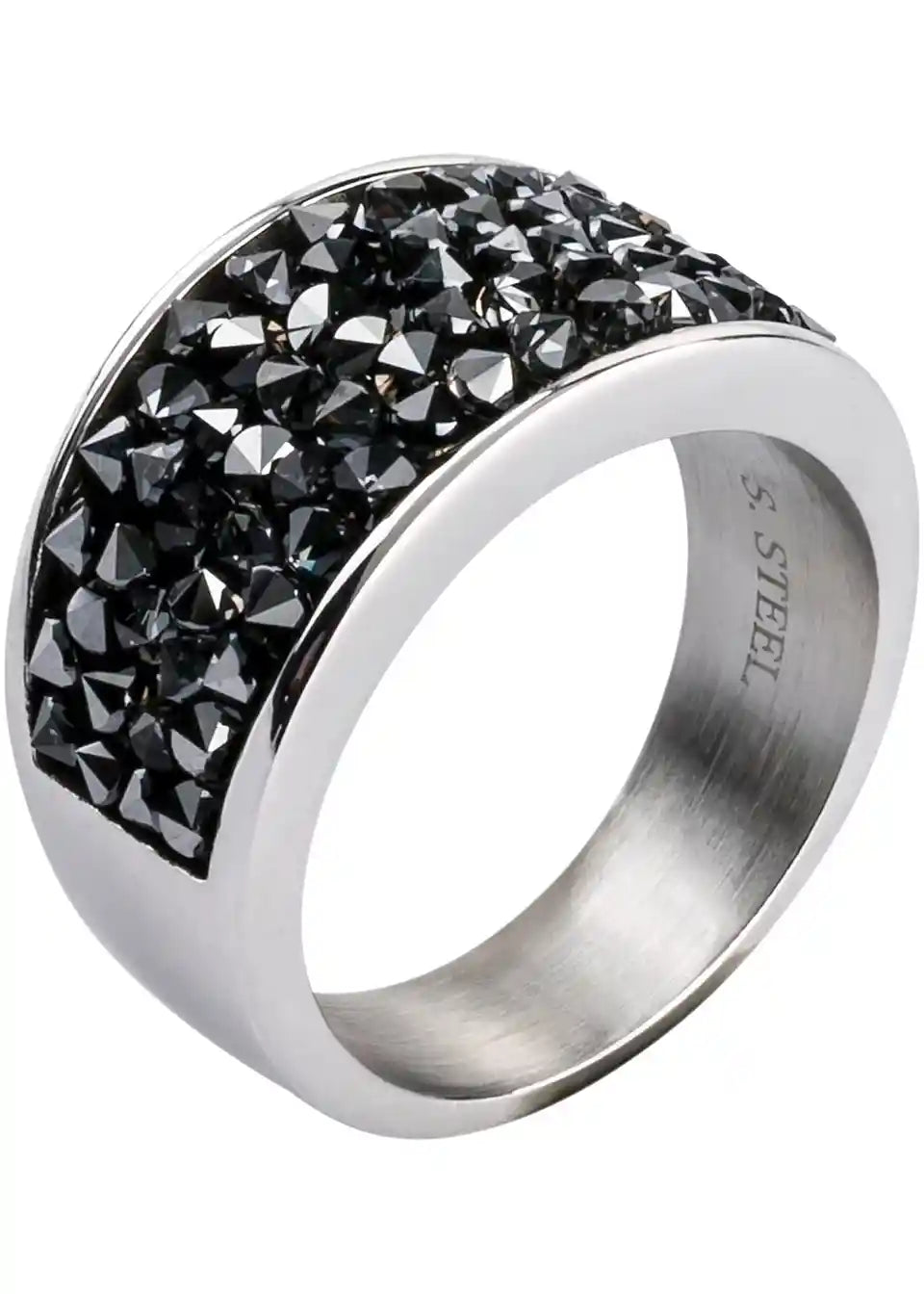 Prstan iz plemenitega jekla oplemeniten s steklenimi kristali