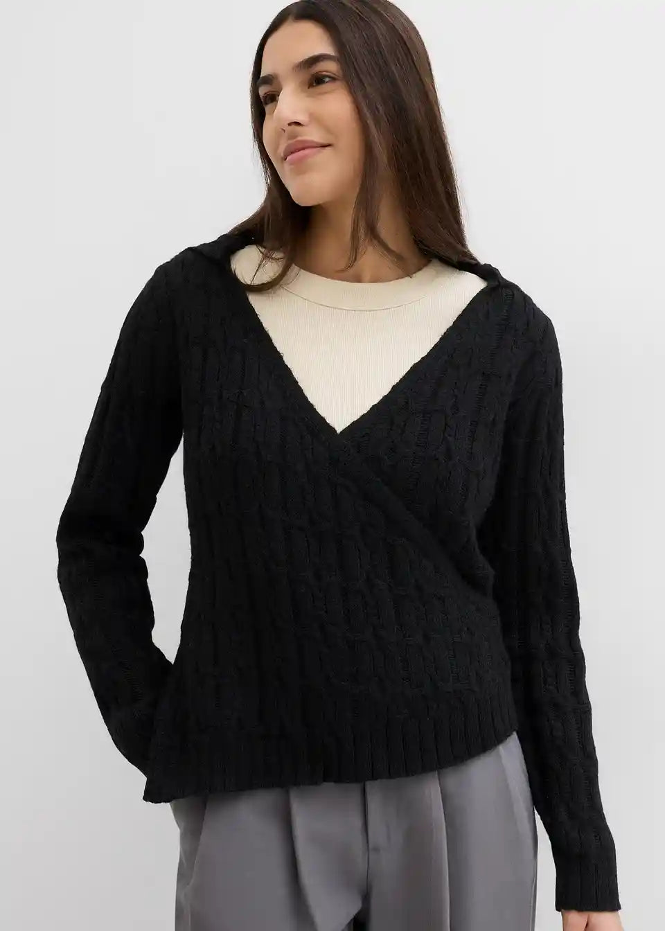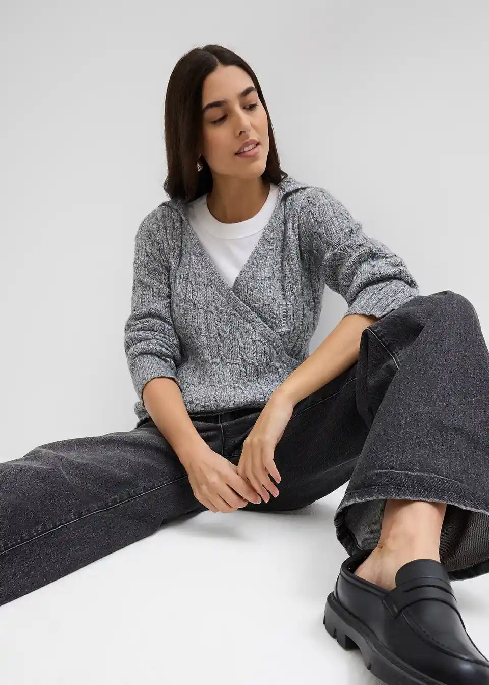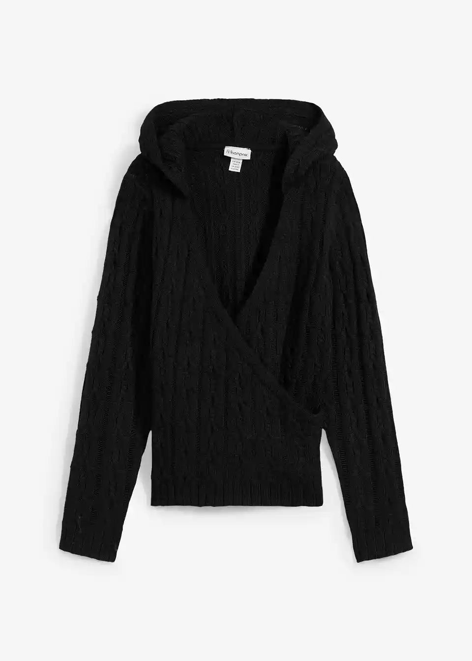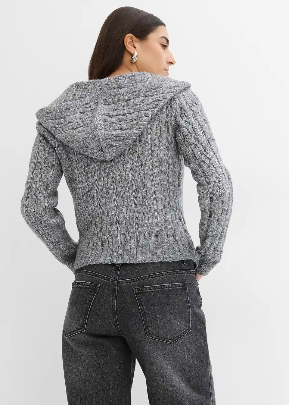 Moderen pleten pulover s kapuco in z asimetričnim spodnjim robom