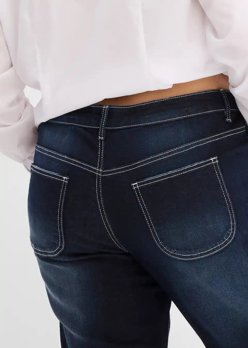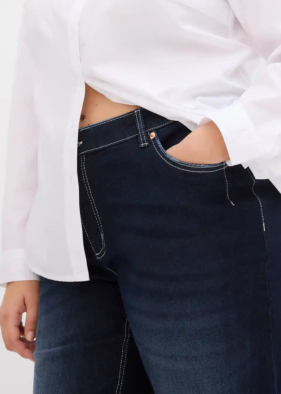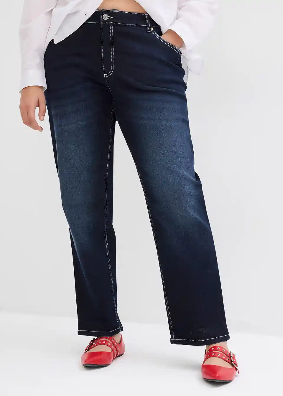 Ravne kavbojke s srednje visokim pasom in stretch materialom