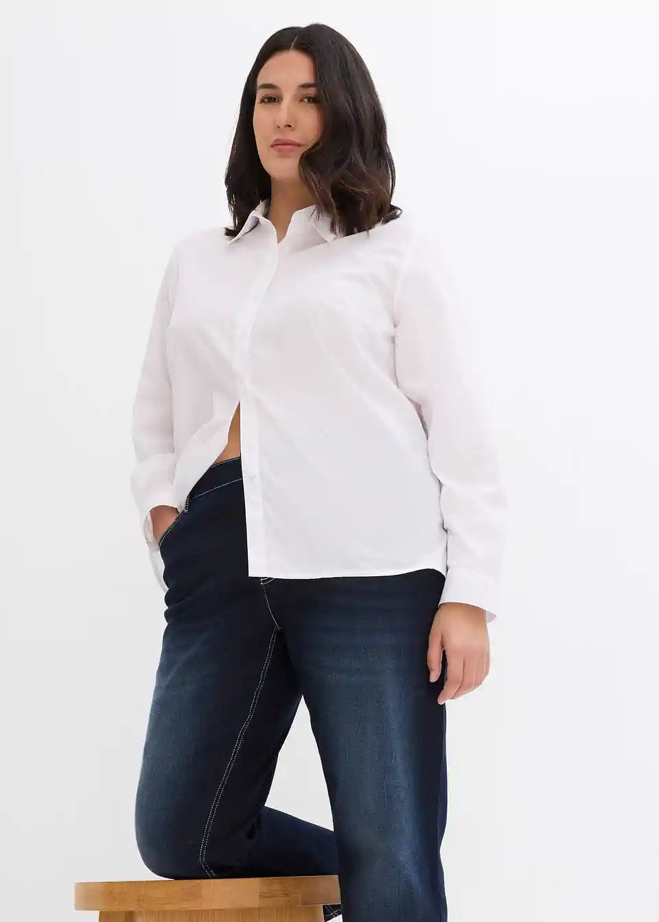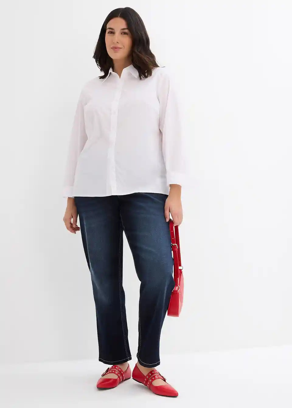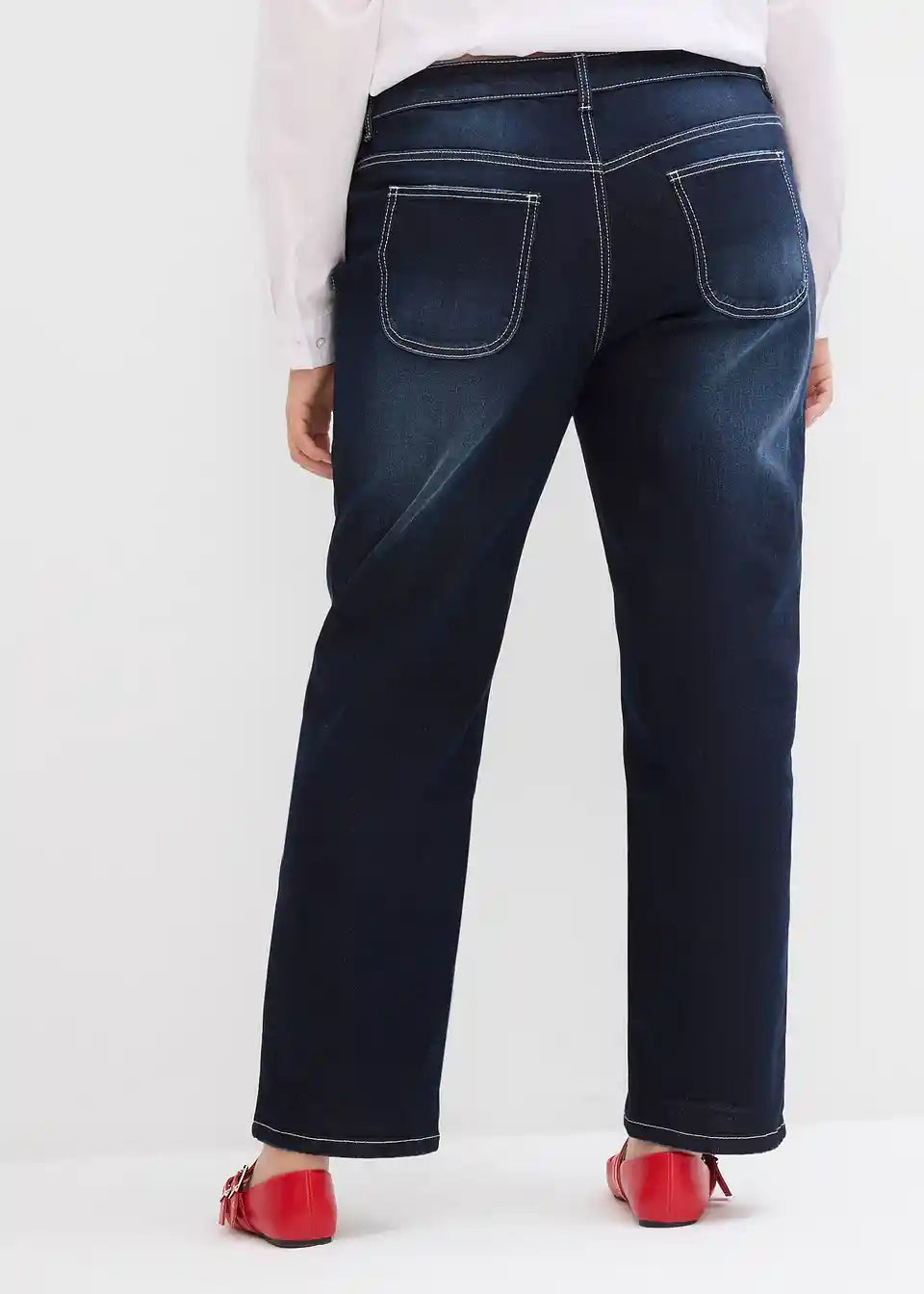 Ravne kavbojke s srednje visokim pasom in stretch materialom