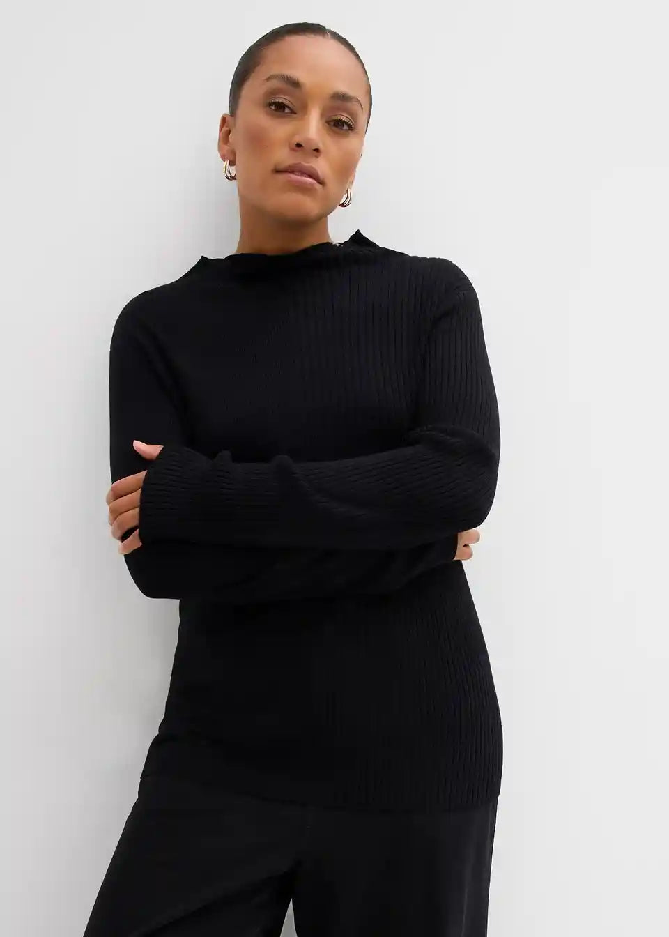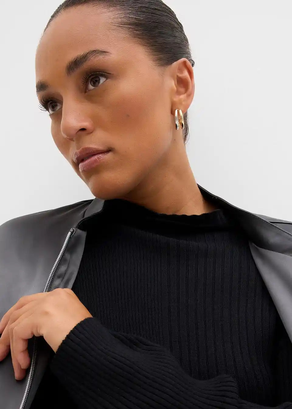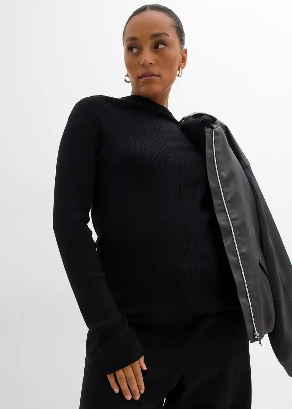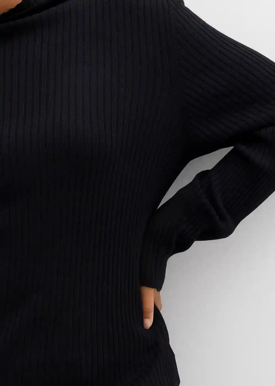 Oprijeta majica s pokončnim ovratnikom in dolgimi rokavi iz rebraste pletenine
