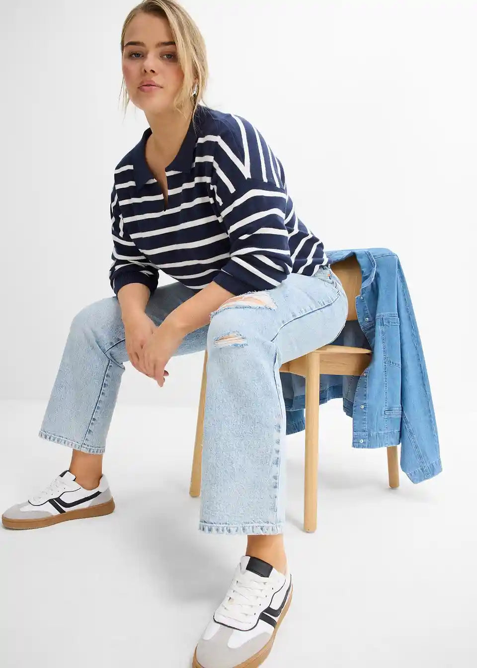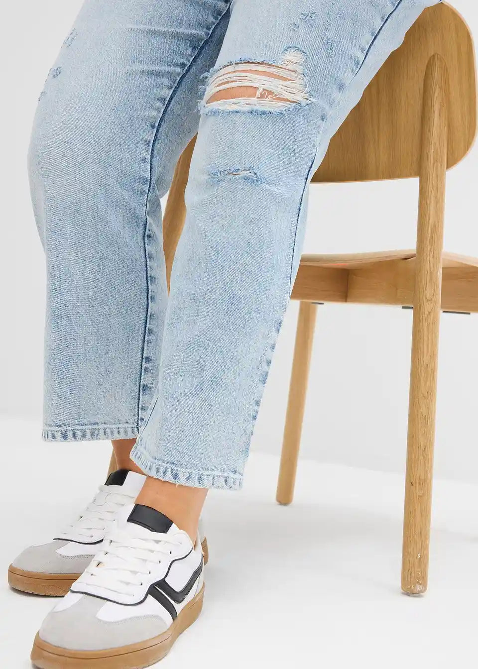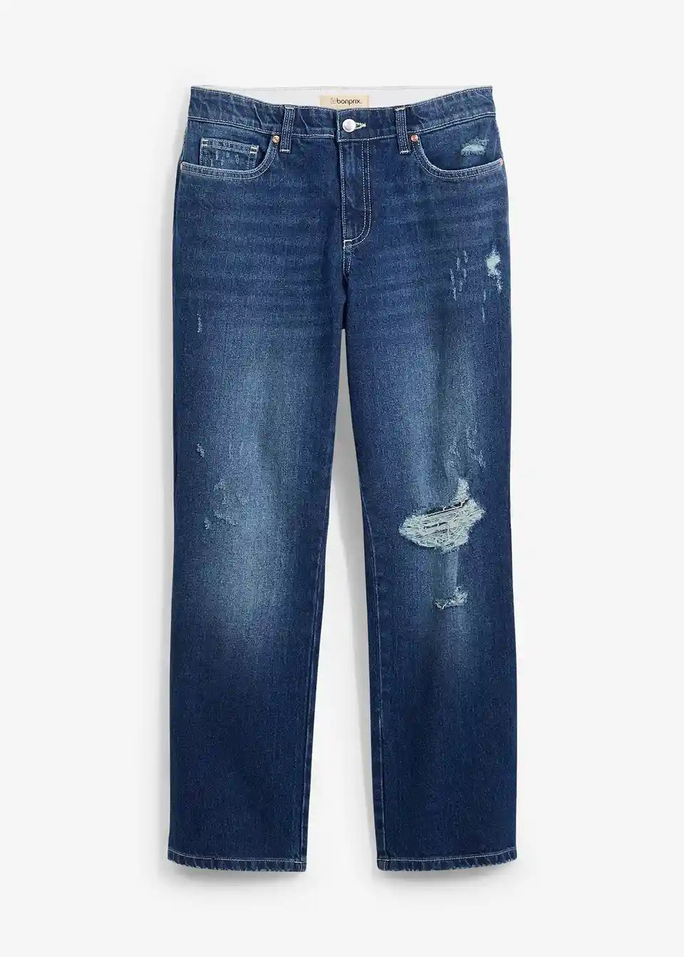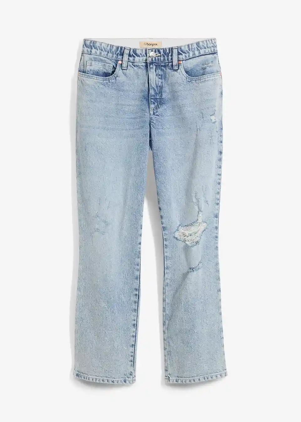 Ravne kavbojke s srednje visokim udobnim pasom iz stretch materiala z nizkim deležem elastana v krajšem kroju