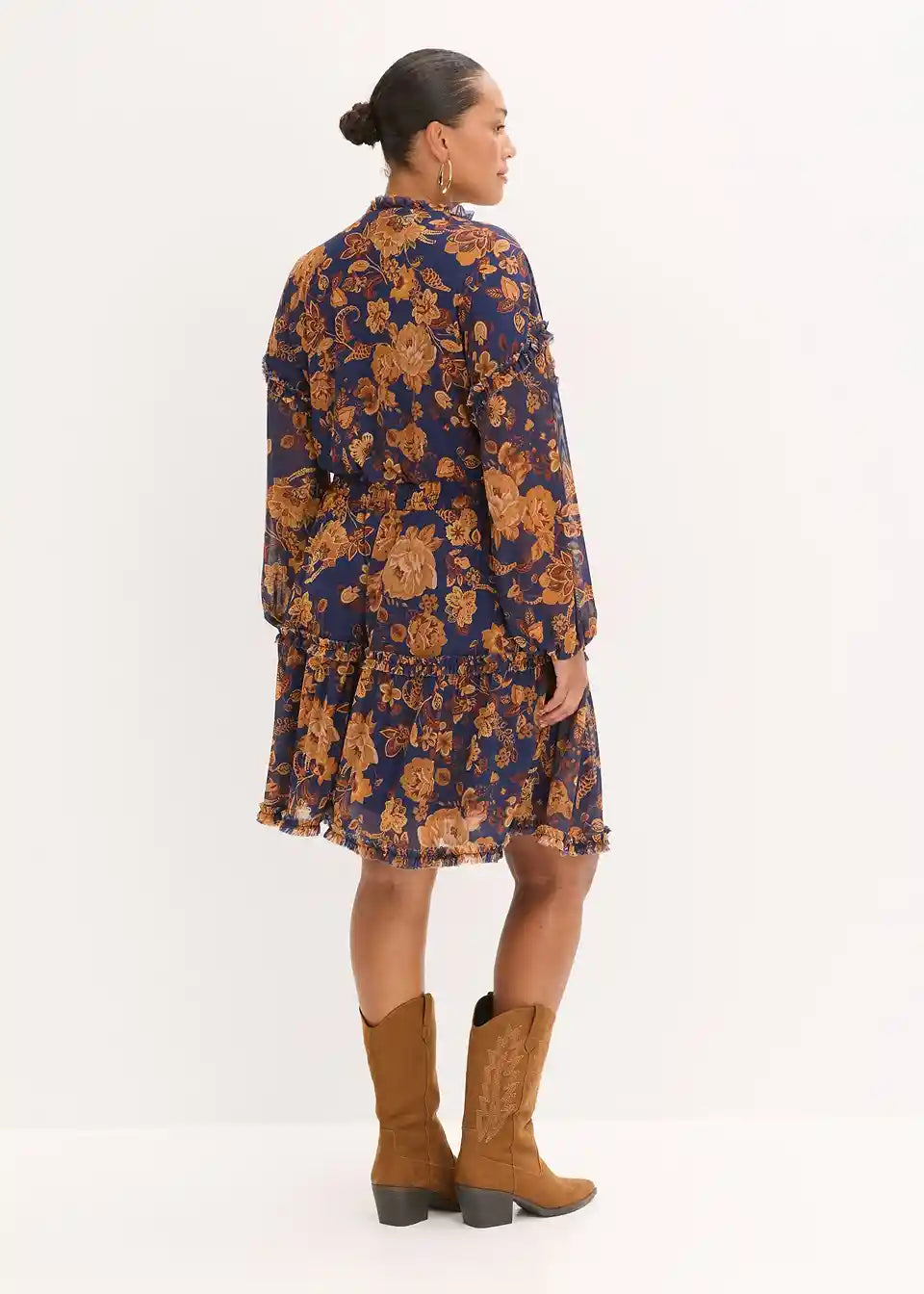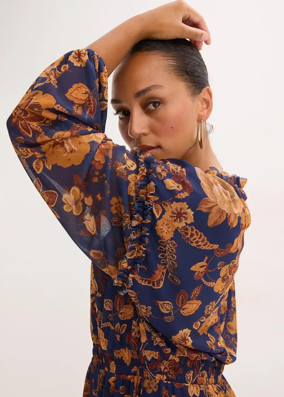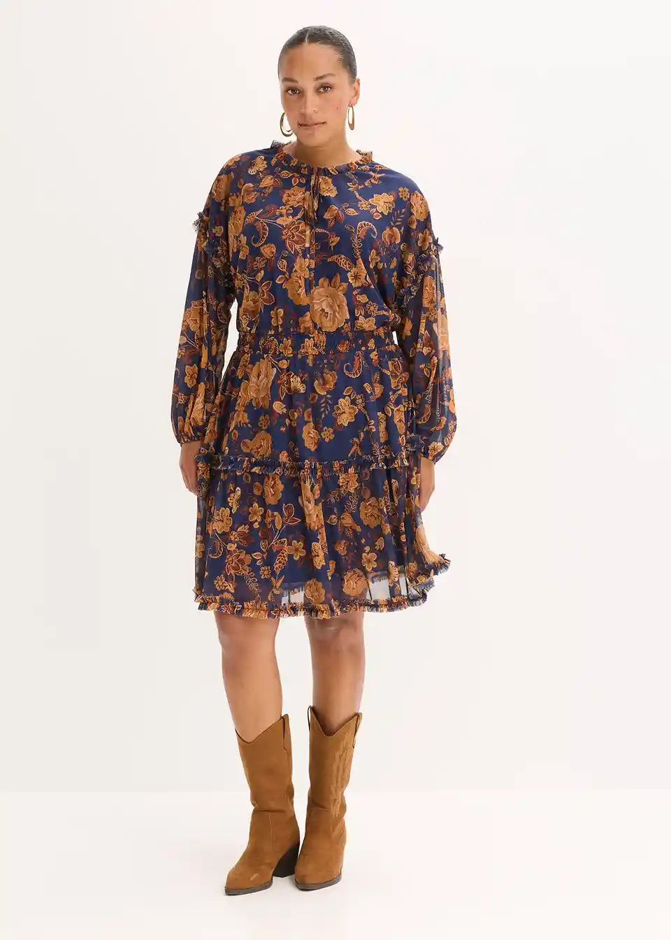 Kratka obleka v kroju tunike iz mehke mreže z majhnimi nabranimi detajli