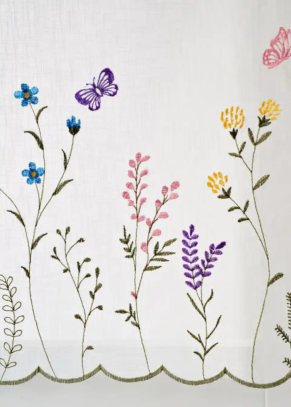Polovična zavesa s cvetlično vezenino