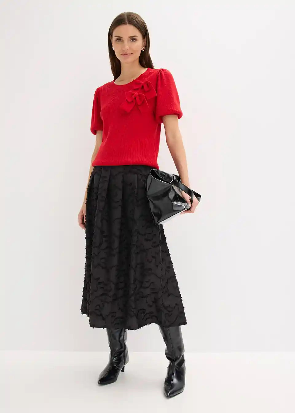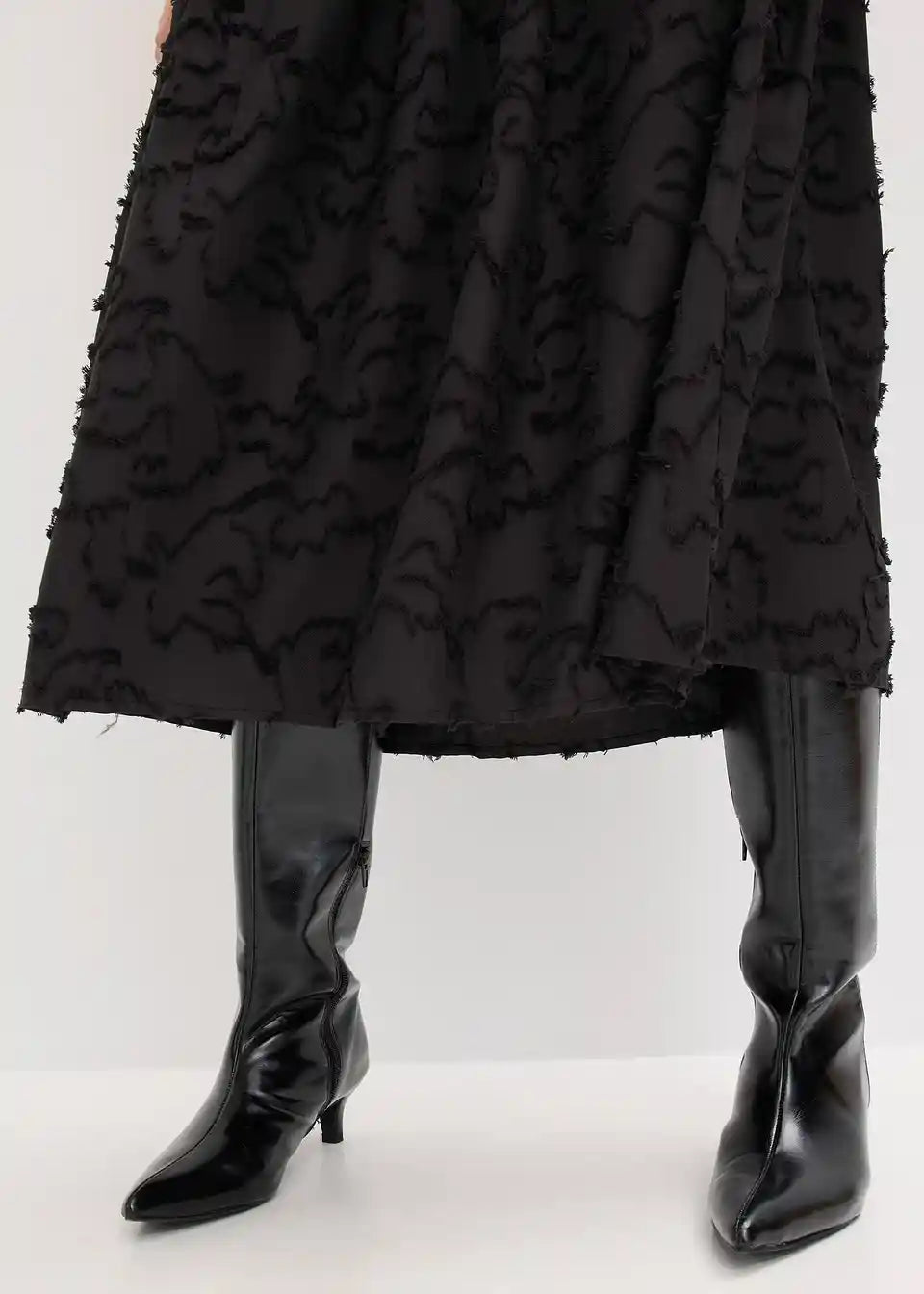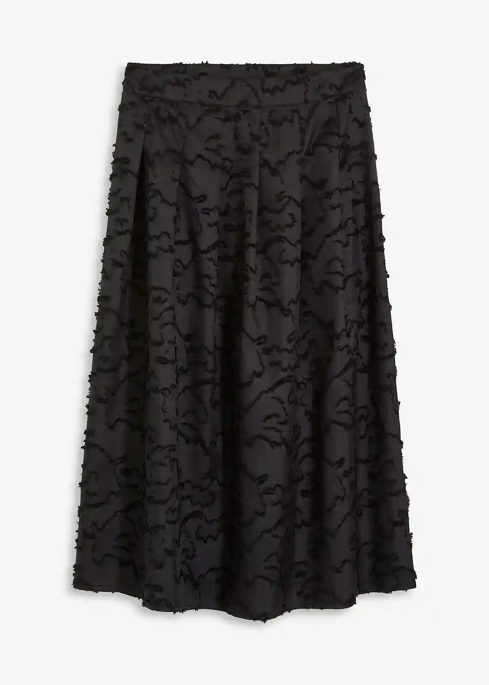 Modno midi krilo iz strukturiranega materiala z zadrgo na strani