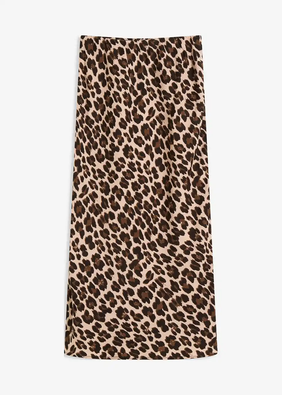 modno potiskano krilo v midi dolžini iz tekočega satena z elastičnim pasom