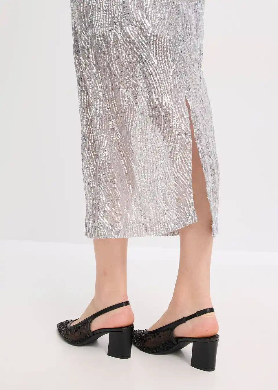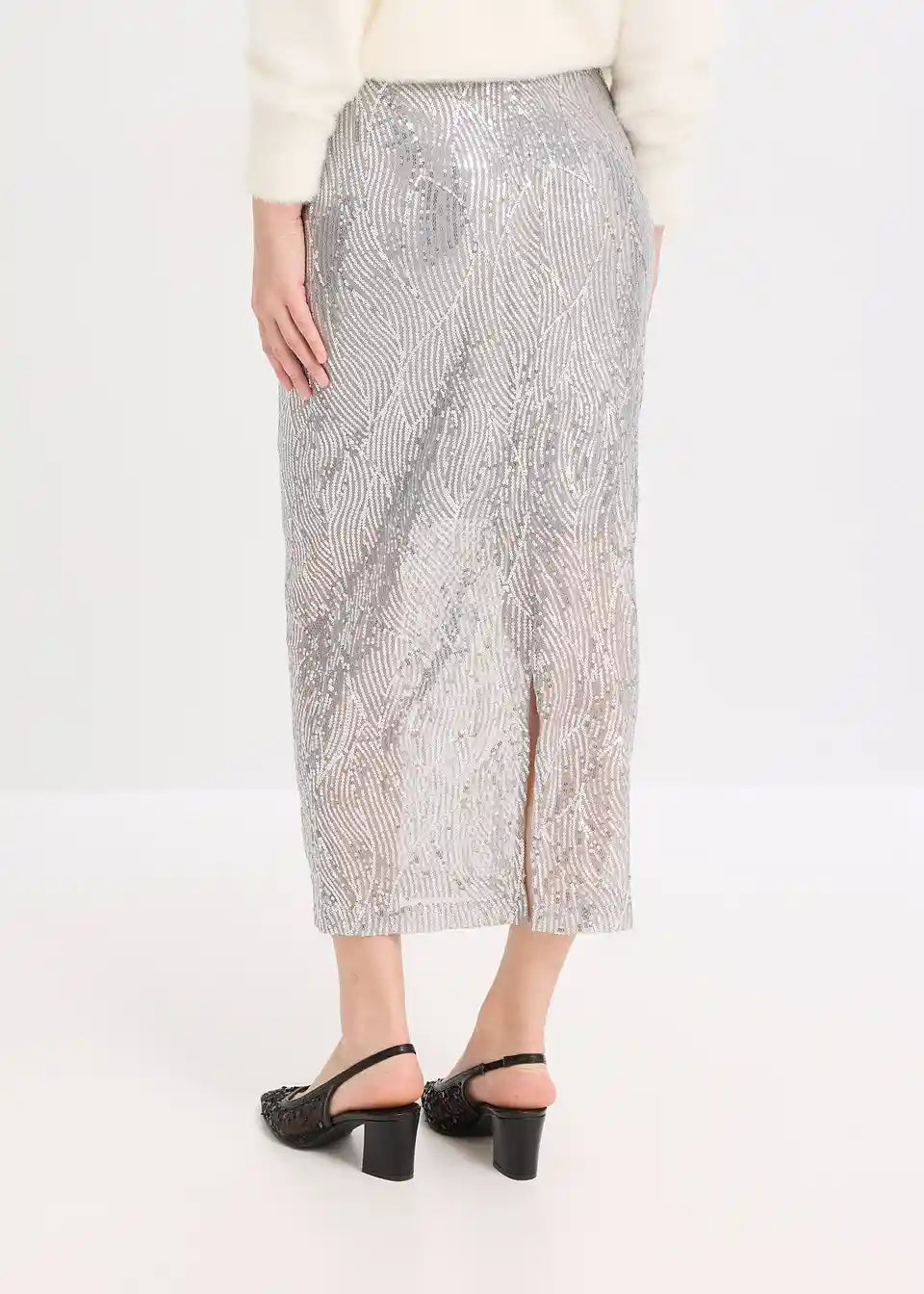 Modno z bleščicami posuto midi krilo z elastiko v pasu s podlogo.