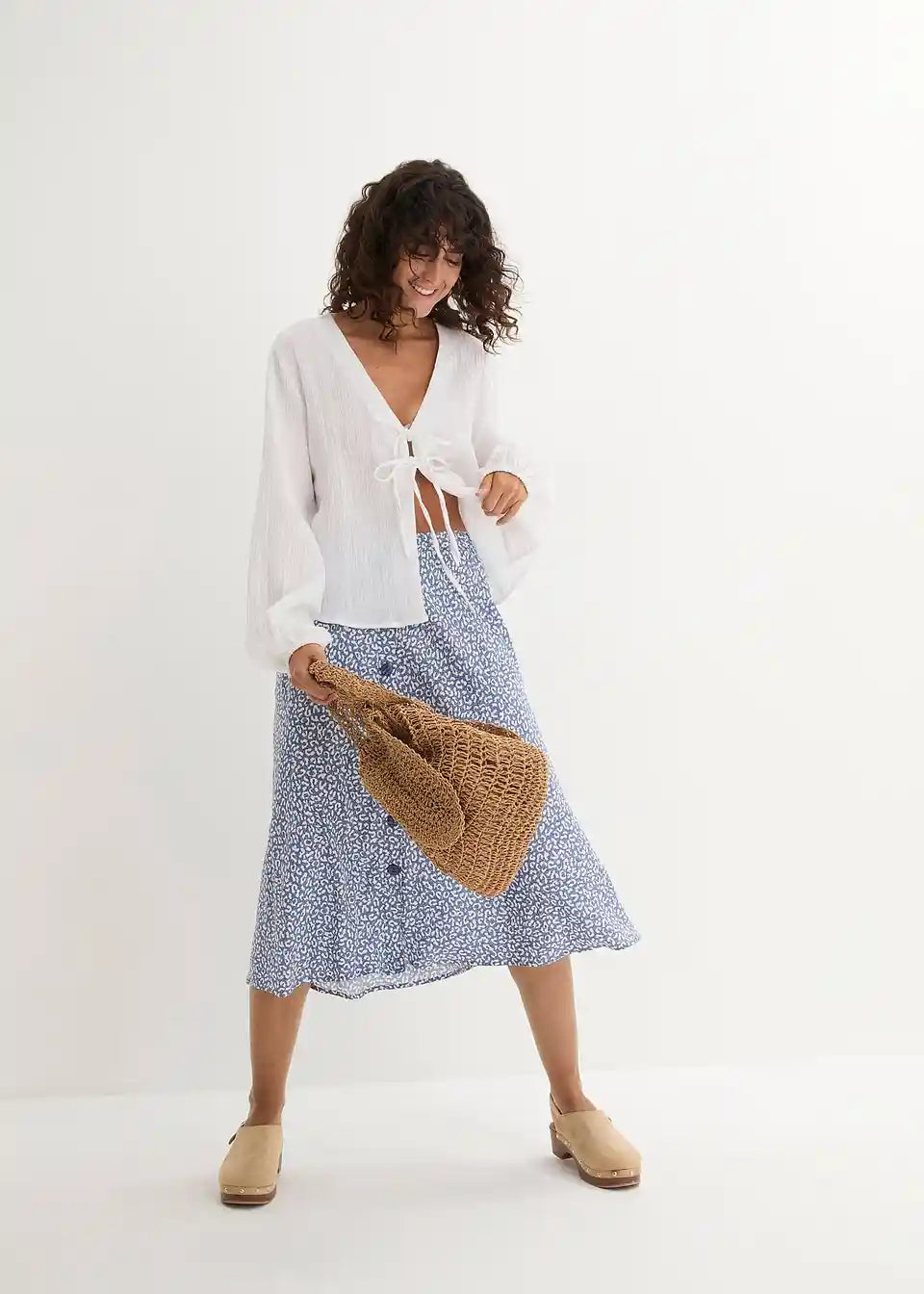 Stilsko viskozni krilo z našitimi žepi in udobnim pasom