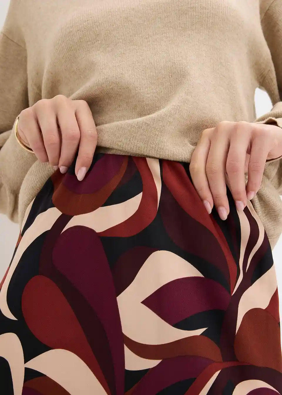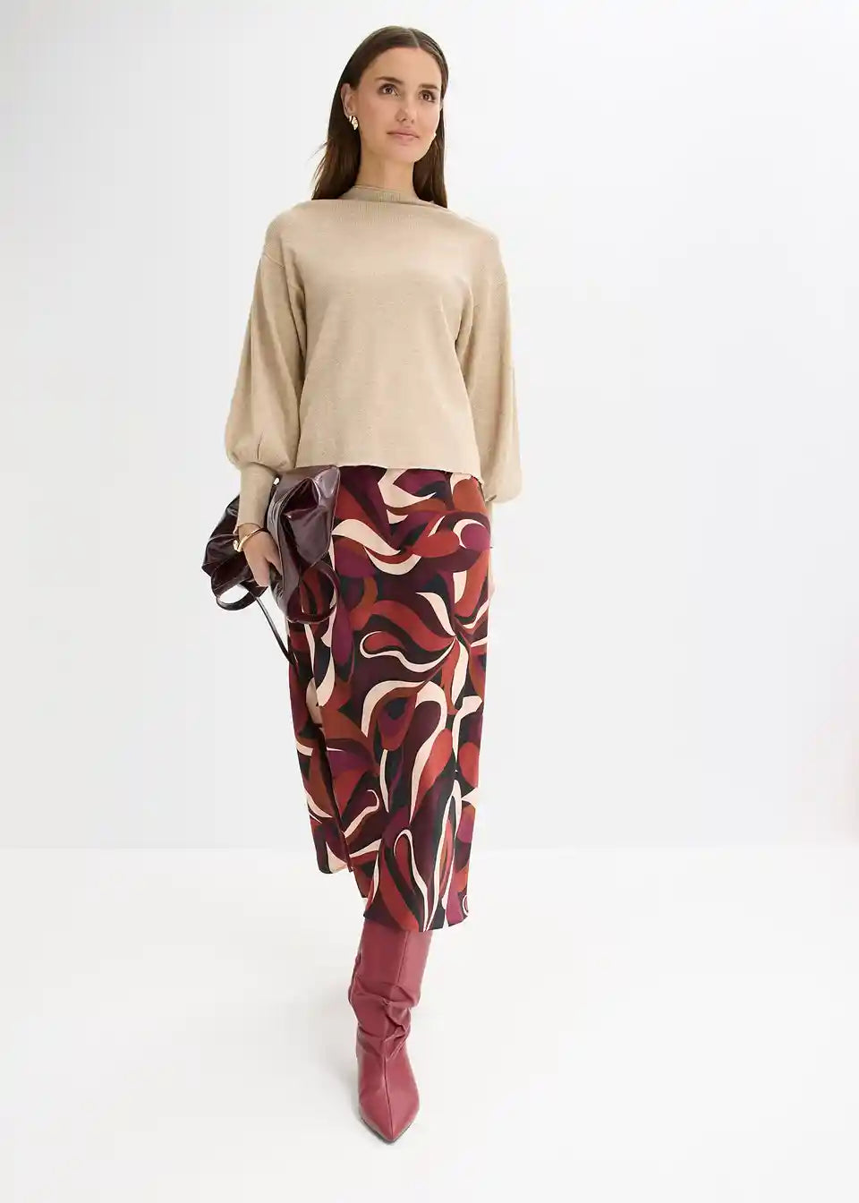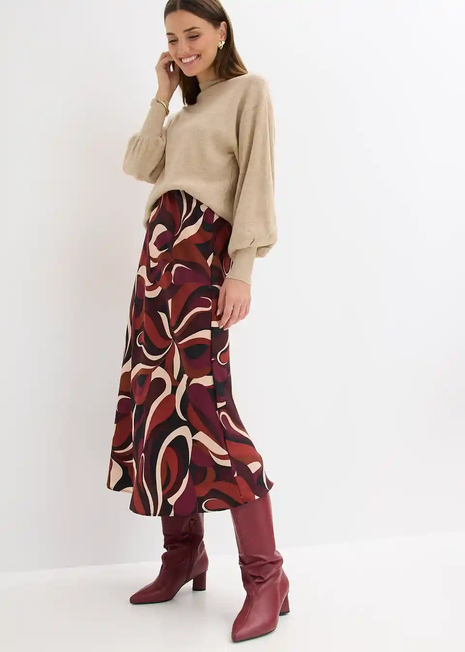 Modno midi krilo iz padajočega satena z elastiko v pasu znotraj