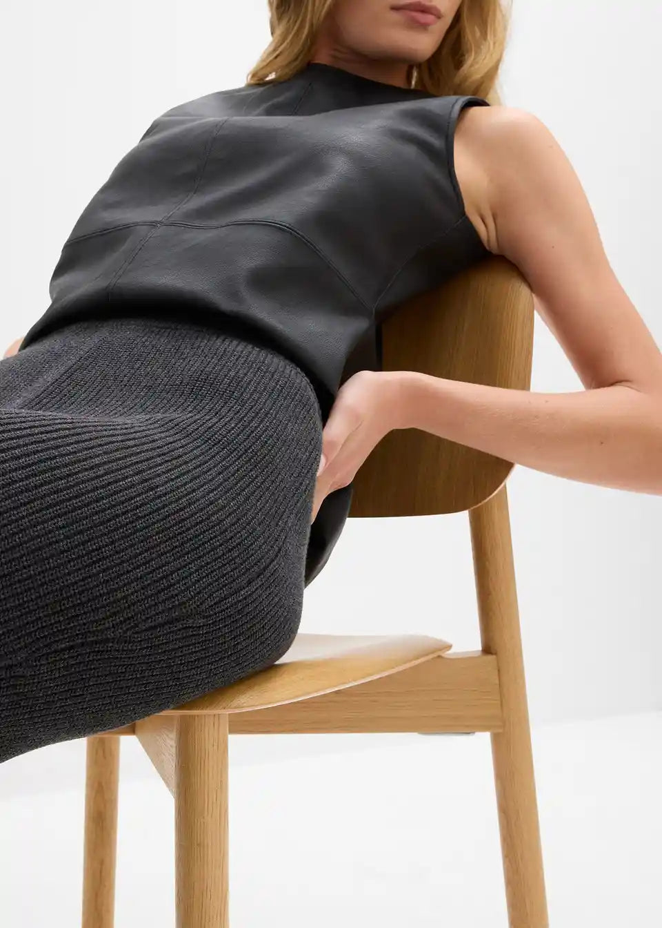 Ozko maksi pleteno krilo z elastičnim pasom iz čistega bombaža