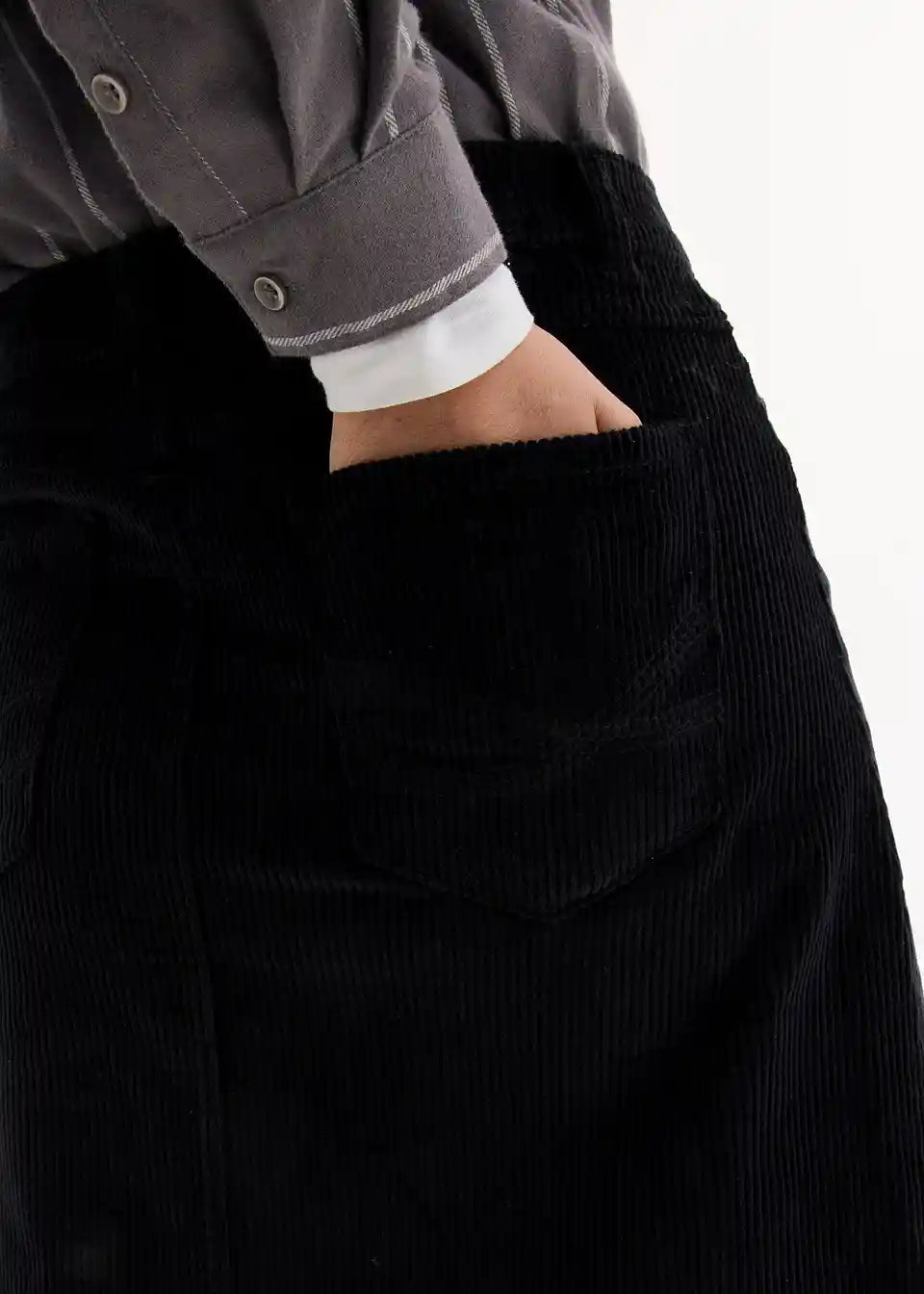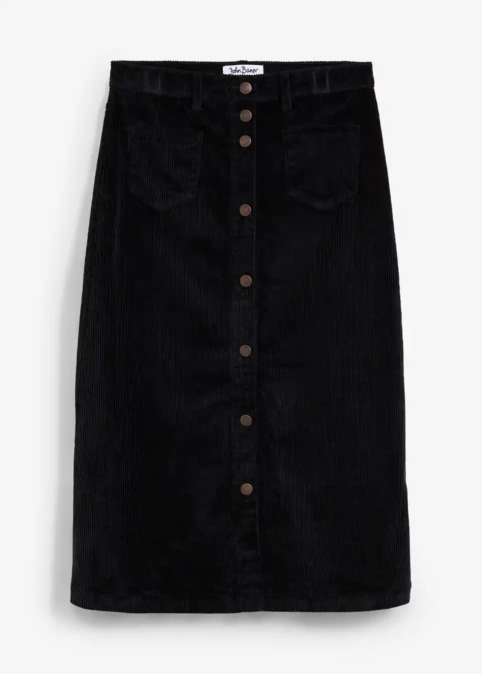 Stretch krilo iz žameta z letvijo z gumbi v midi dolžini