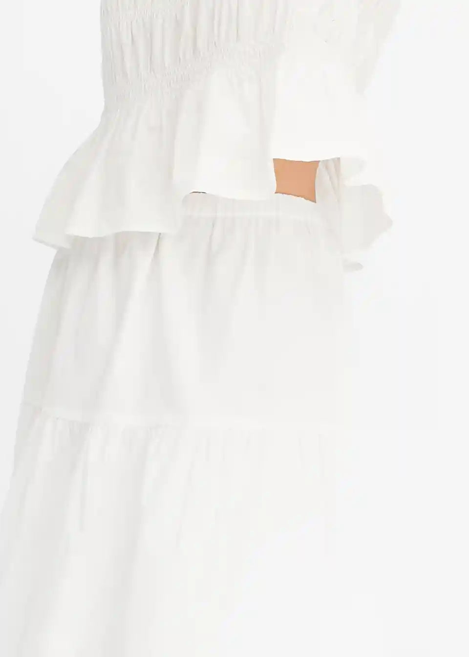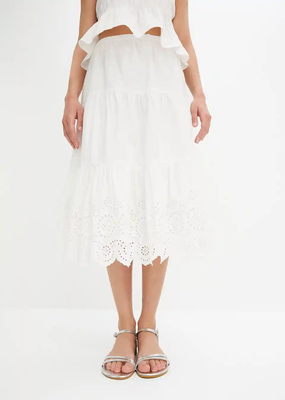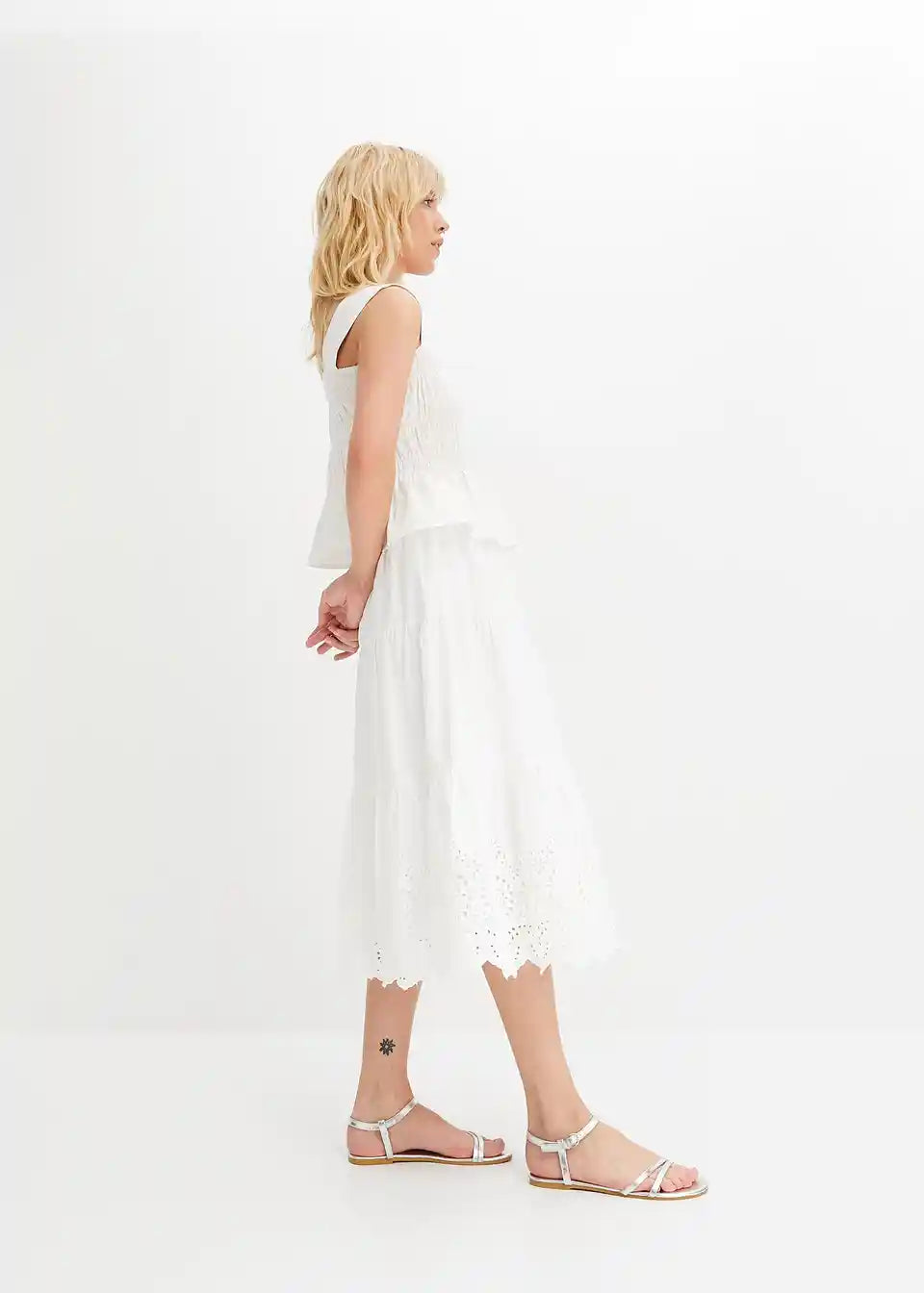 Eleganten stopničast krilo z odprtim vezenjem in gumbi