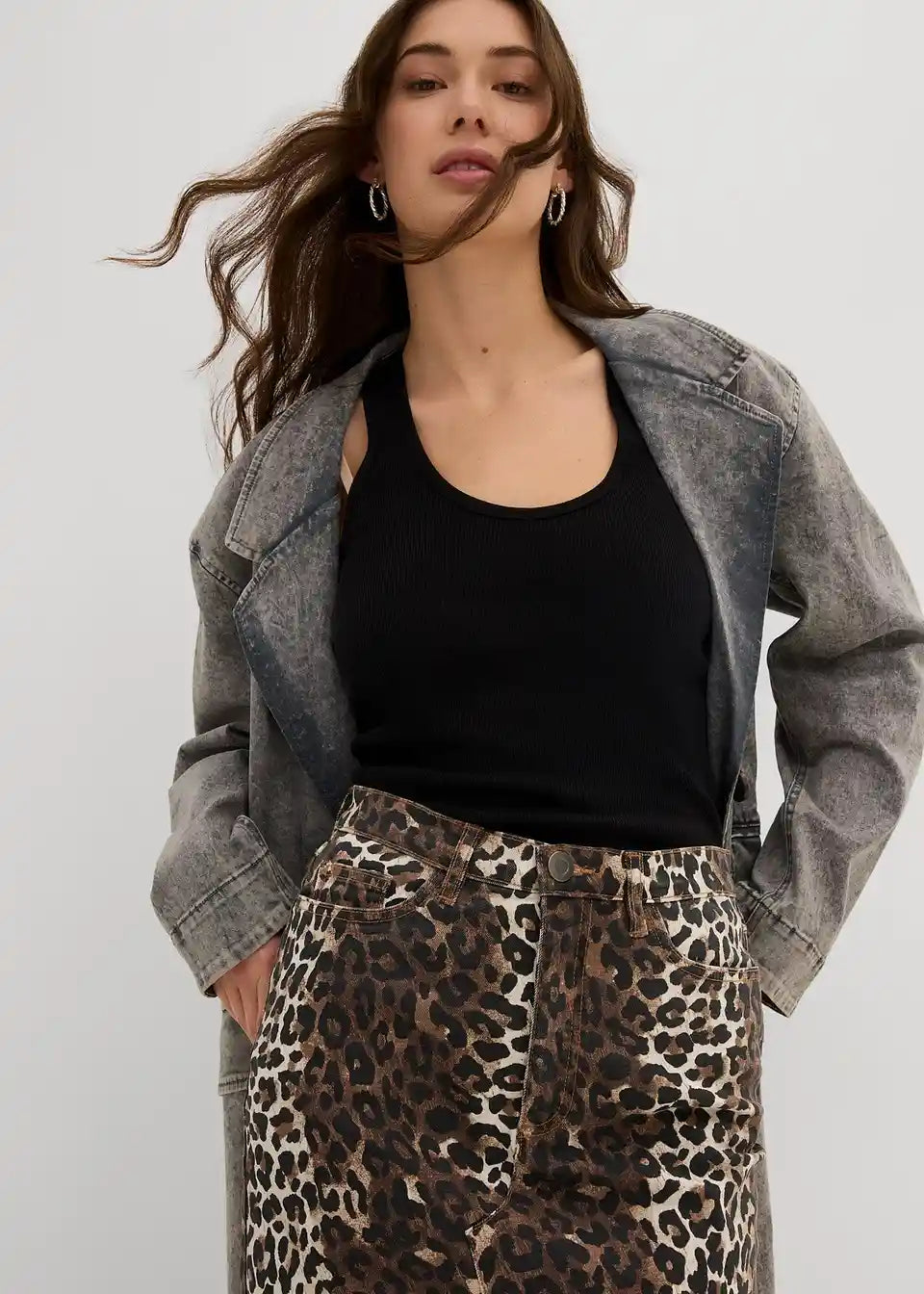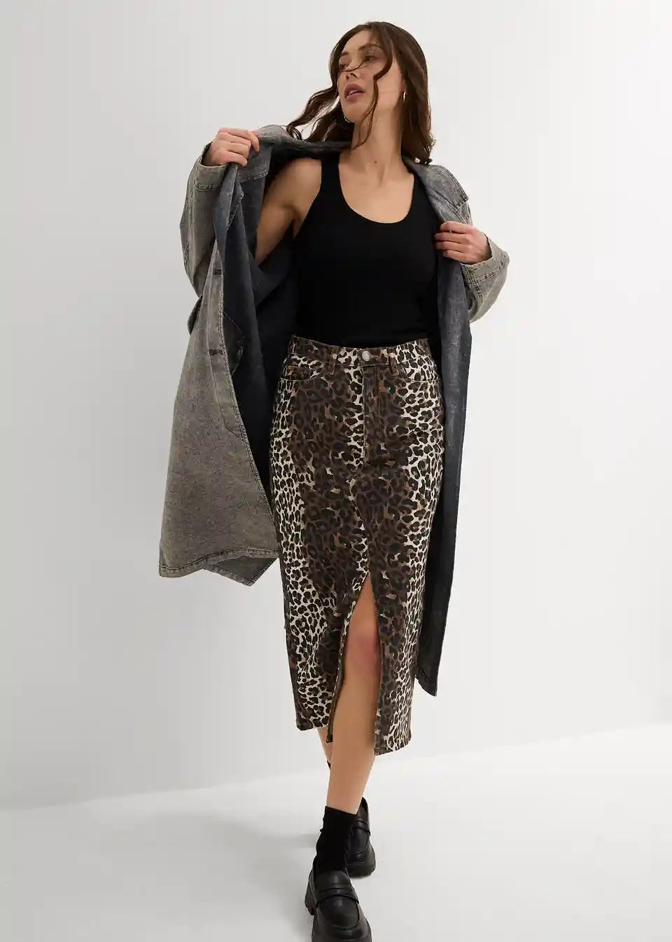 Moderno midi krilo z leopardjim vzorcem iz Tvil
