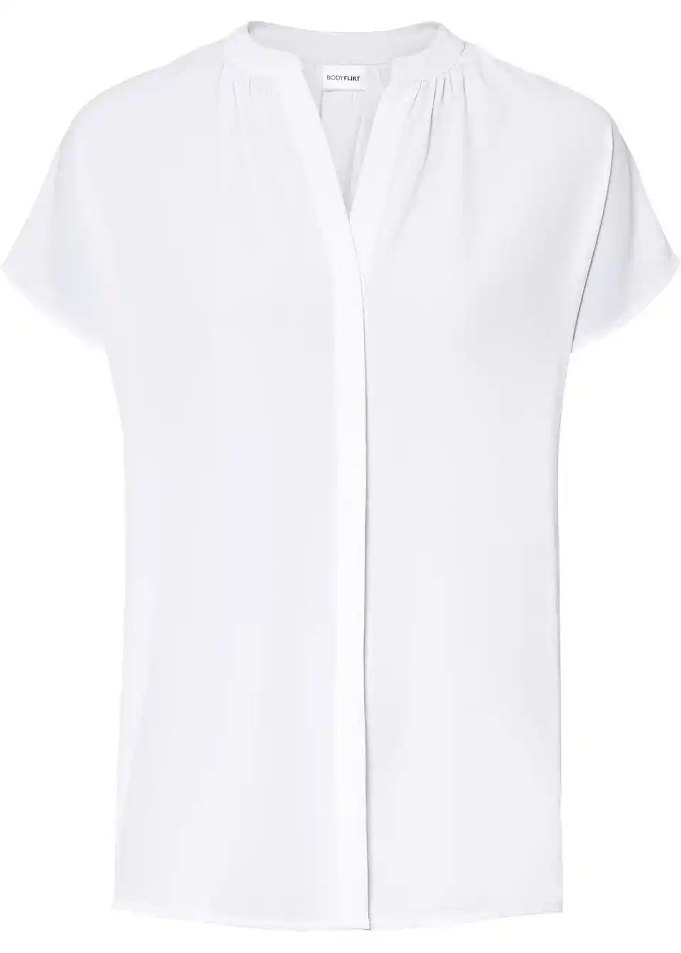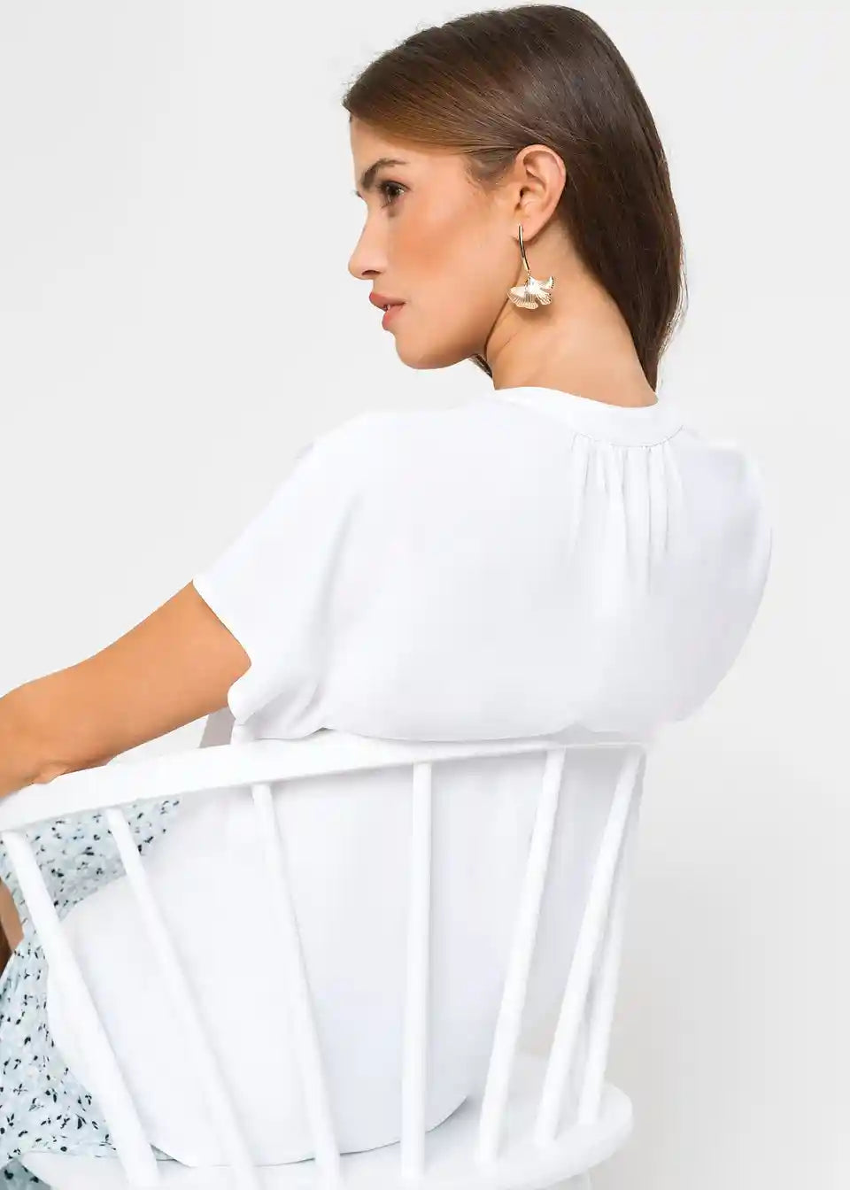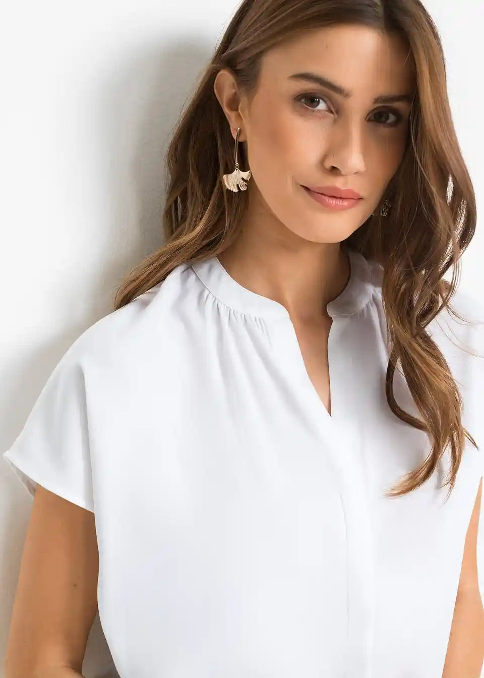 Bluza s kratkimi rokavi in zakrito letvijo za zapenjanje z gumbi
