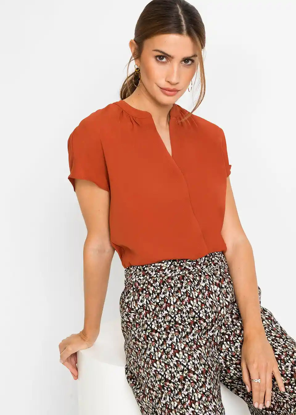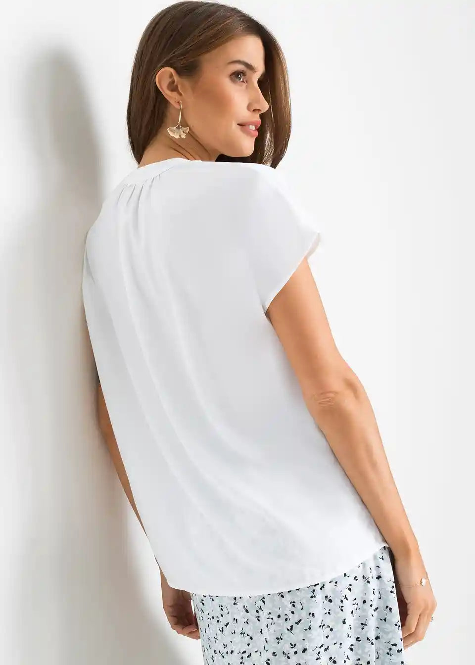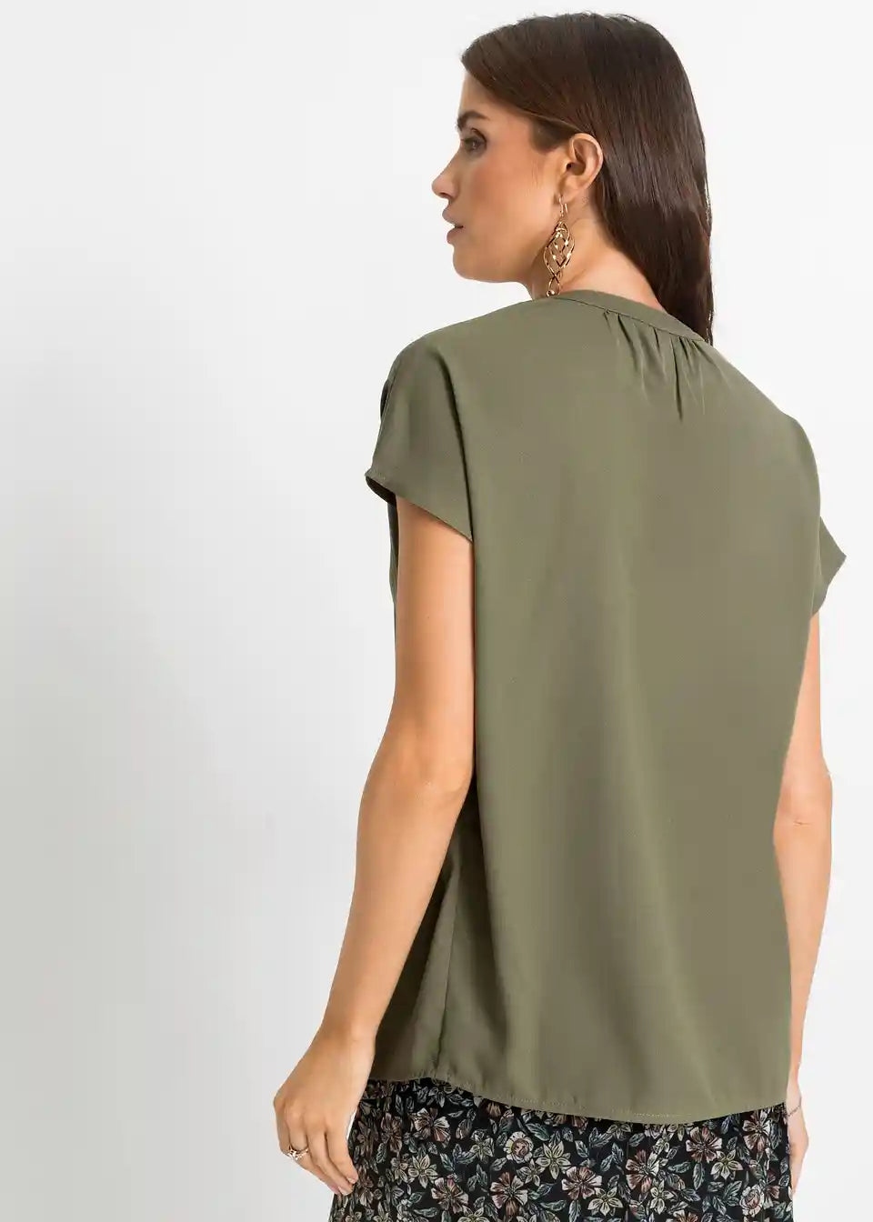 Moderna bluzica z V-izrezom in skrito zapenjanjem.