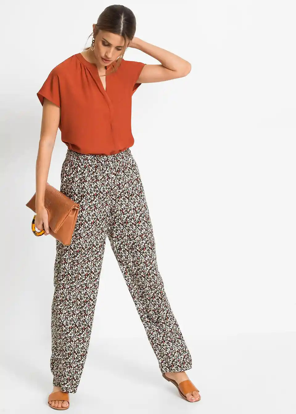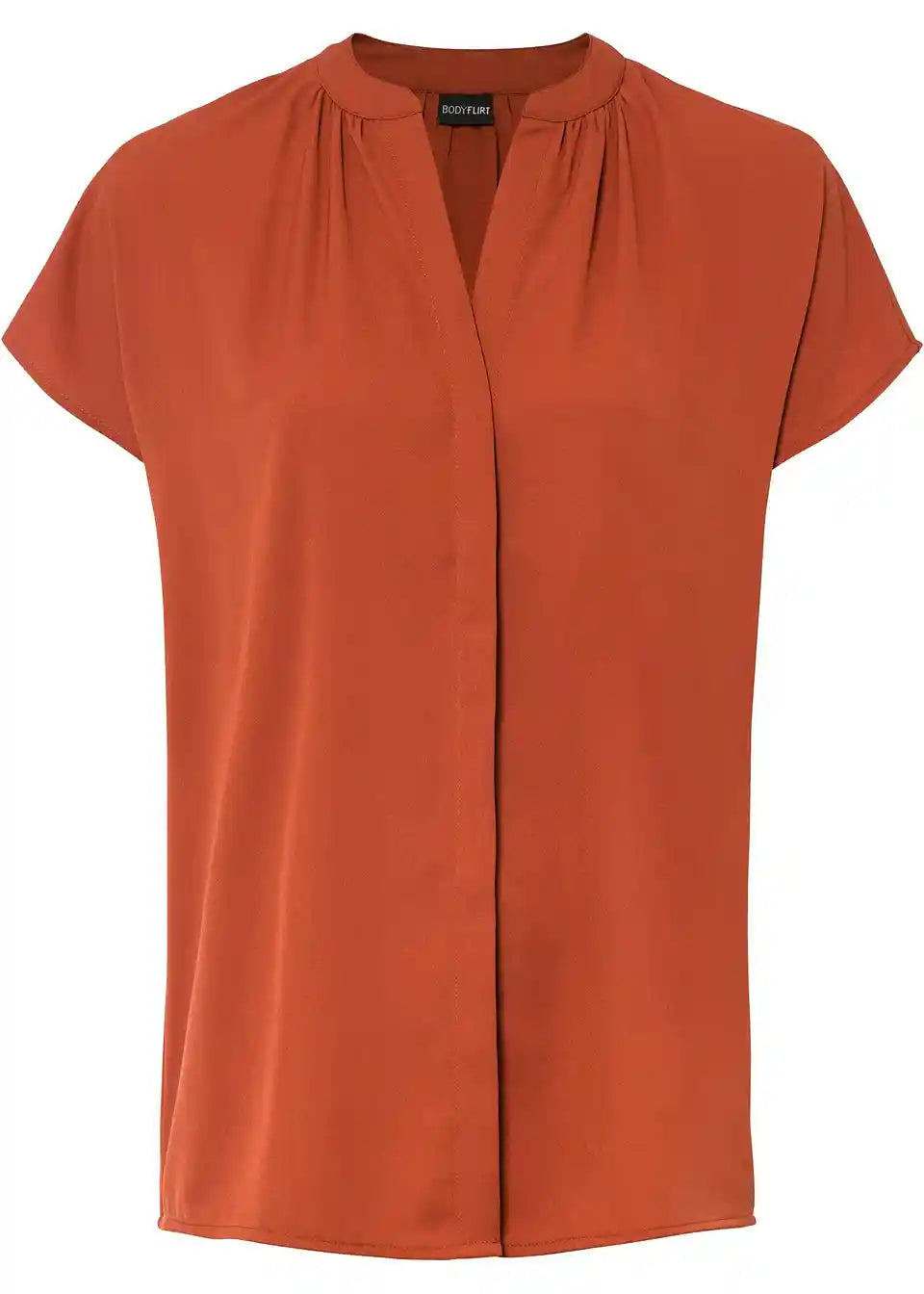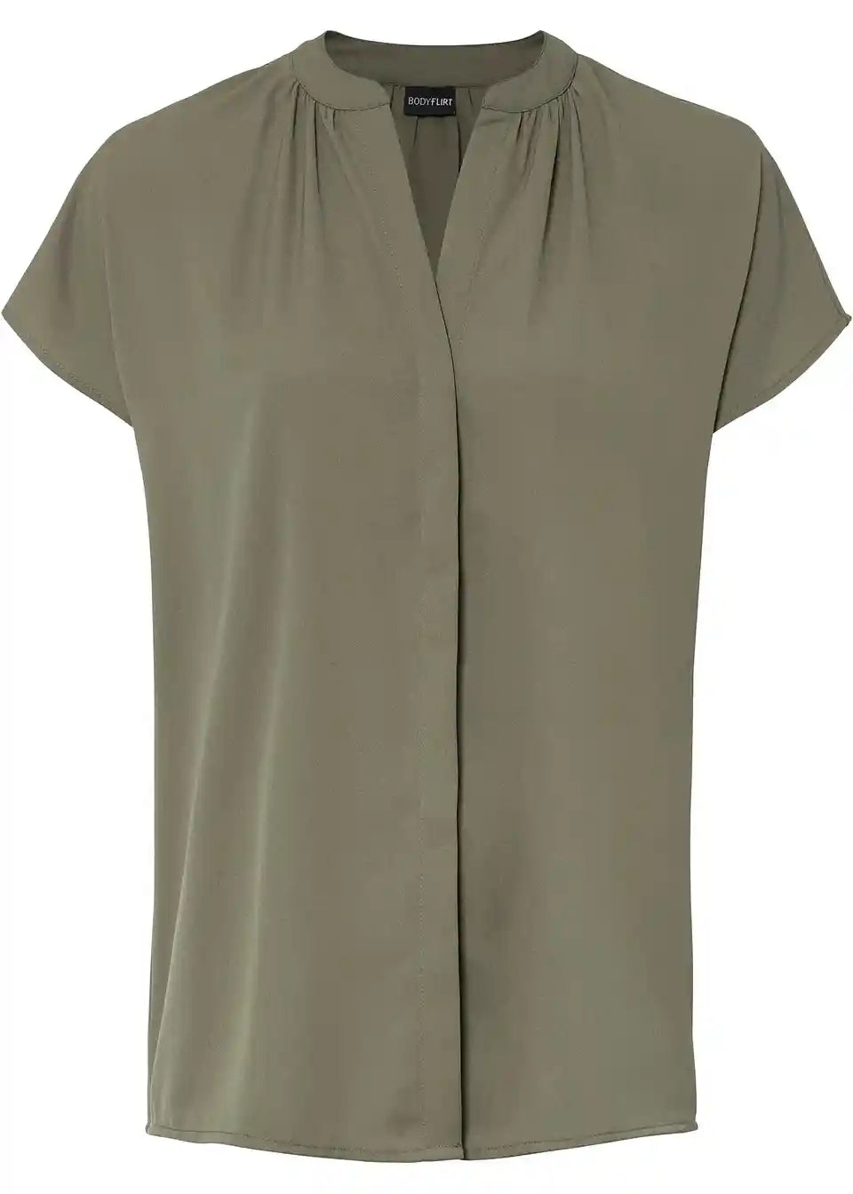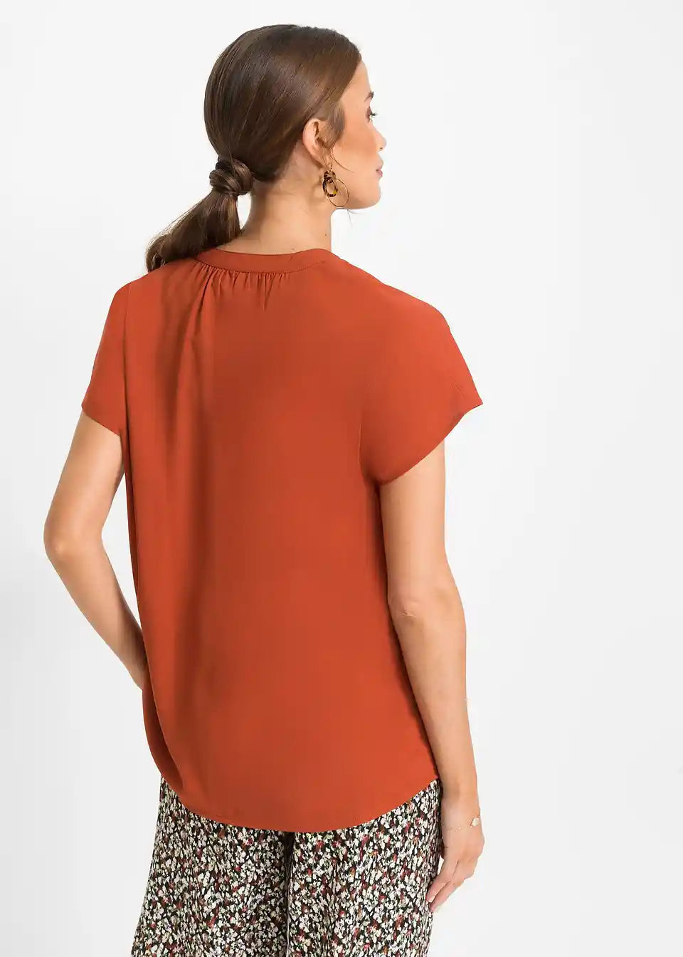 Moderna bluzica z V-izrezom in skrito zapenjanjem.