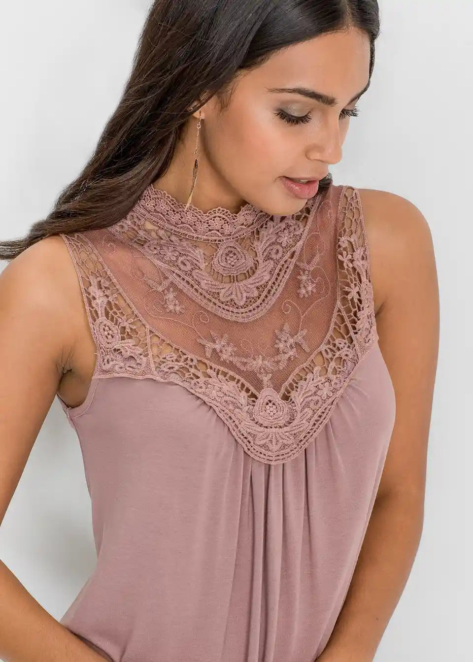 Material:zgornji material: 95% viskoza (certificirana), 5% elastan, čipka: 100% bombaž