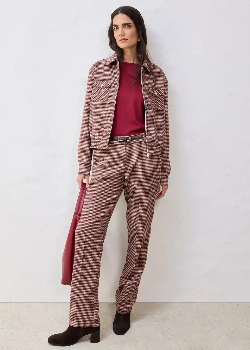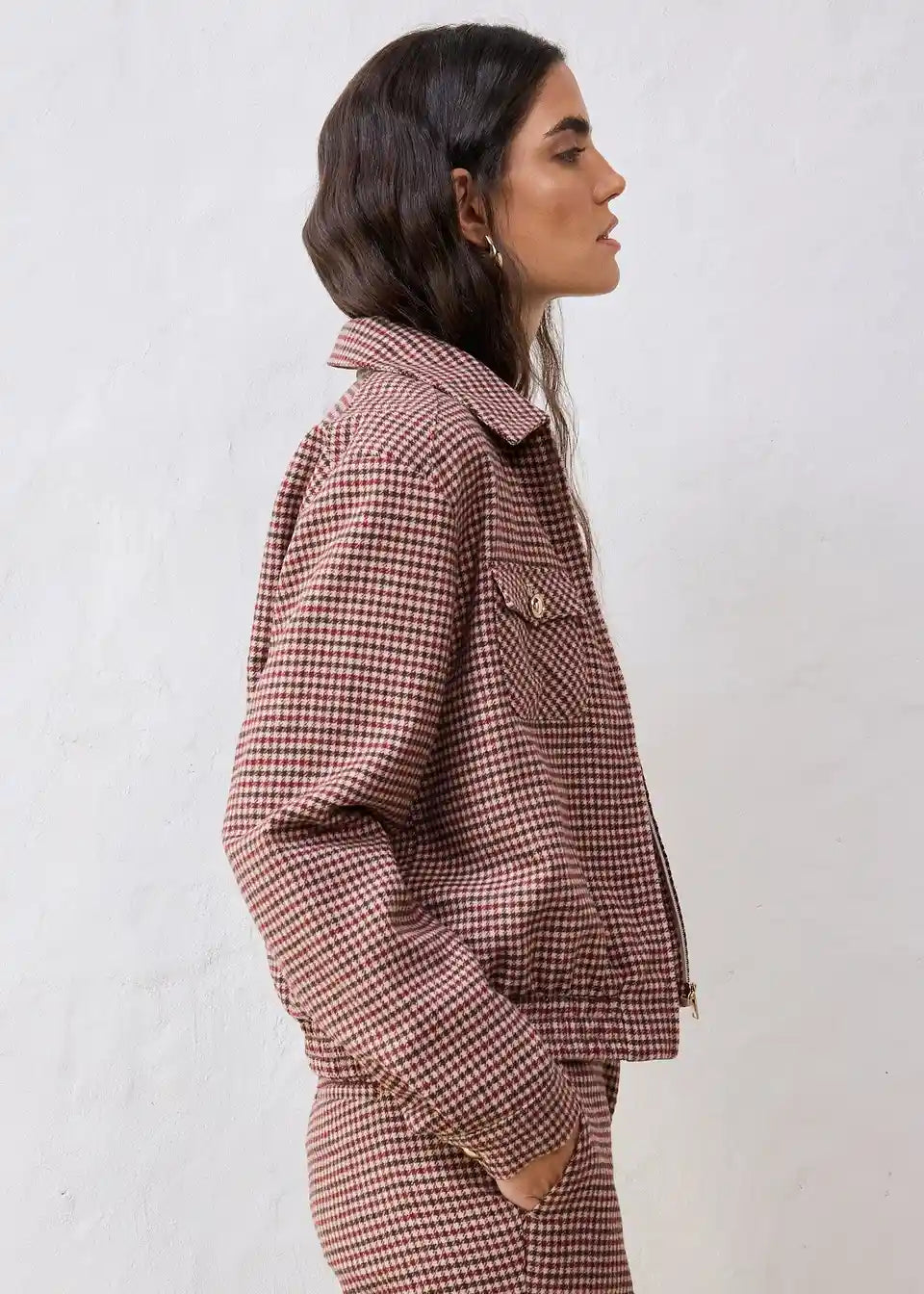 Trendni bluzon iz volnene mešanice v elegantnem karirastem vzorcu