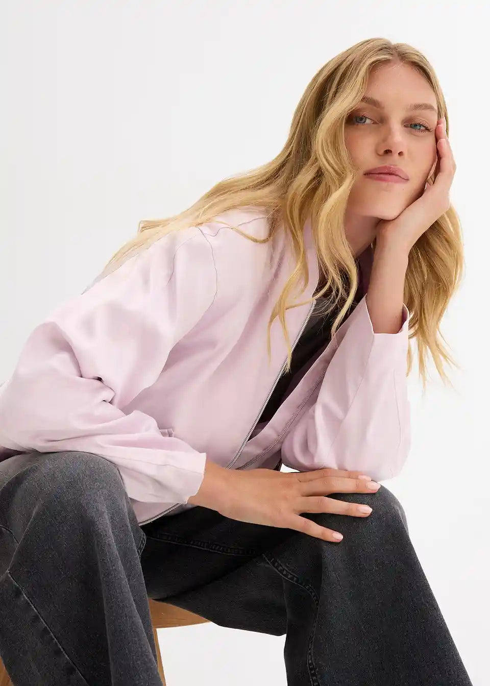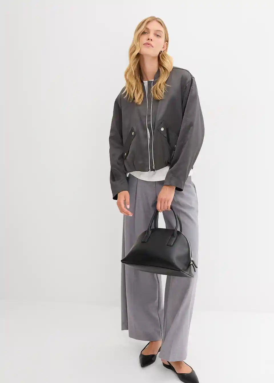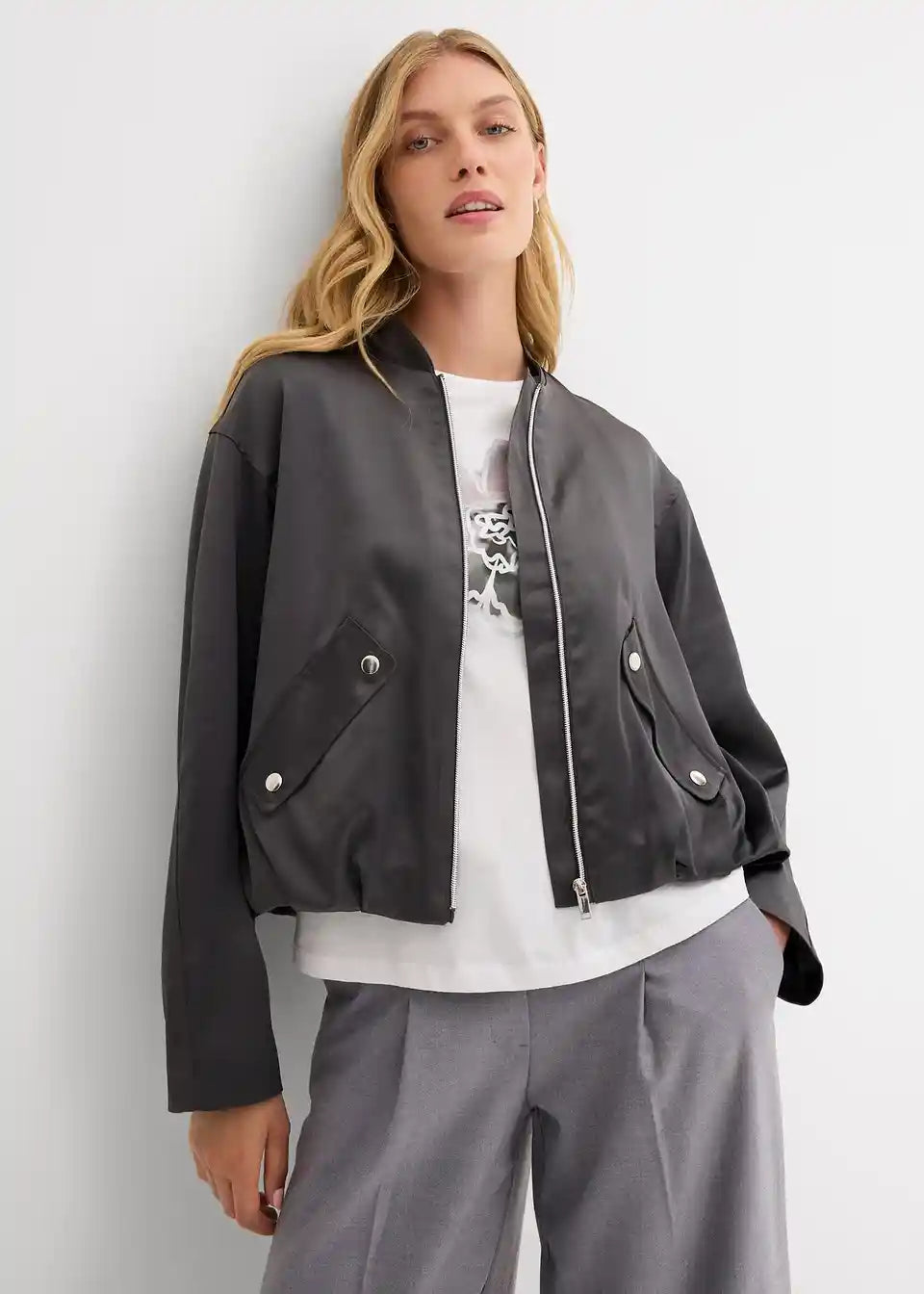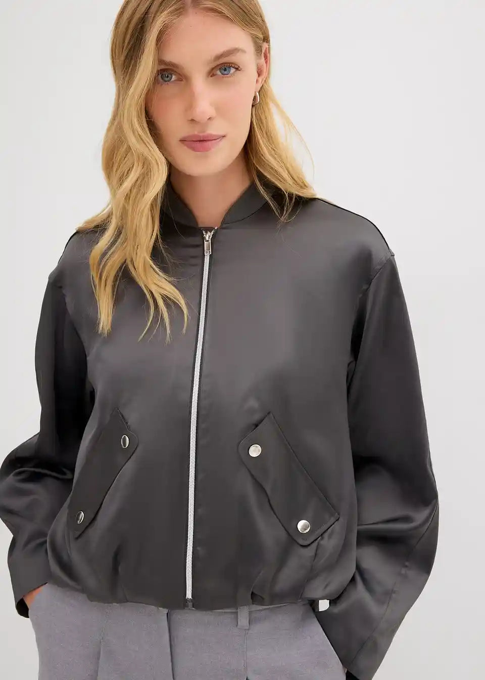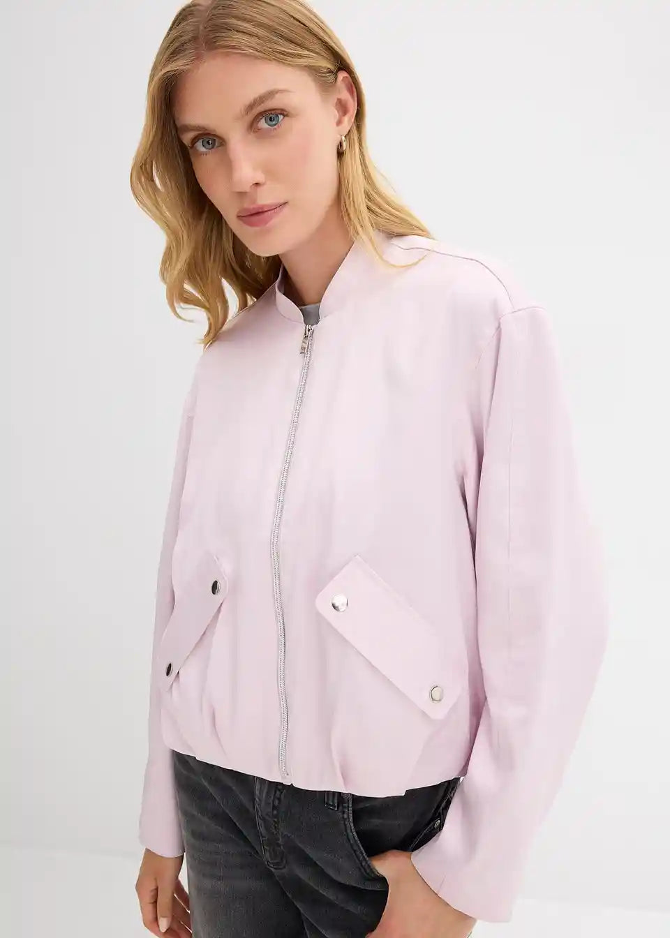 Bluzon jakna s poševnimi preklopnimi žepi spredaj in balonskim robom