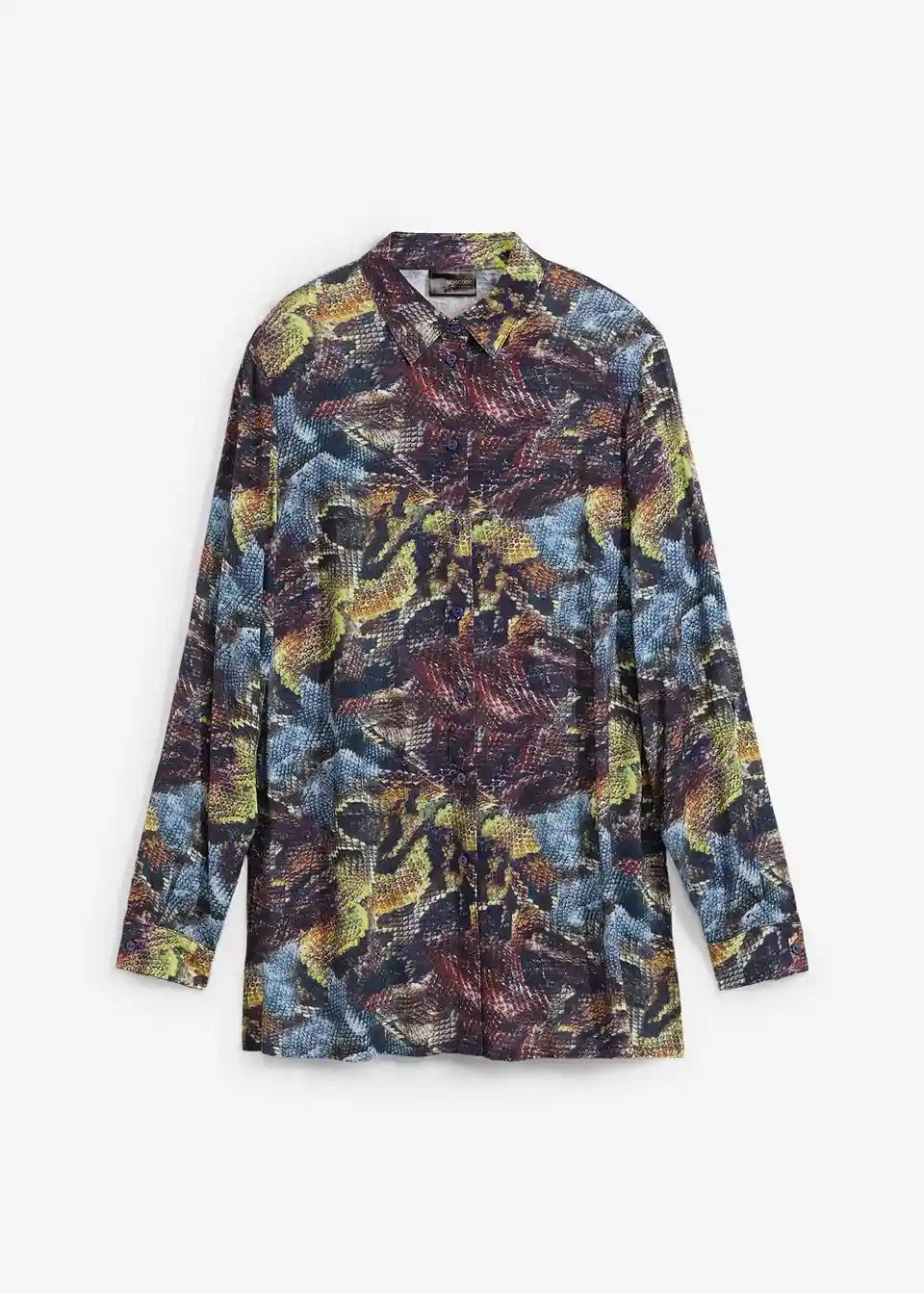 Klasične podrobnosti vključujejo srajčni ovratnik, gumbnico po celotni dolžini in manšetne rokave, ki se lahko zavihajo in pritrdijo z gumbom in trakom.
