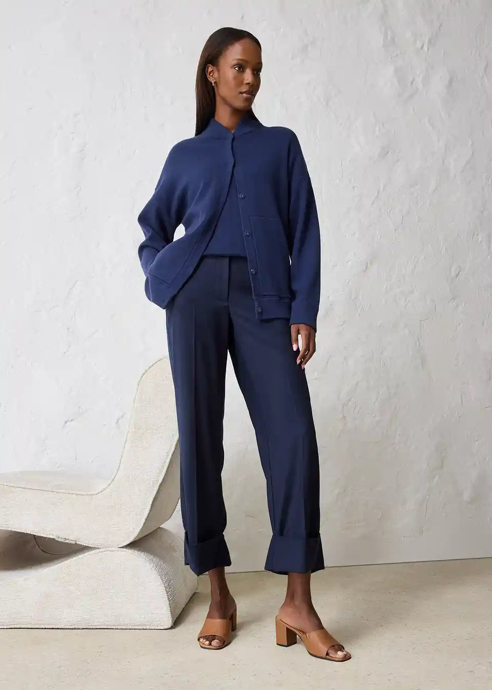 Material:zgornji material: 53% volna, 25% poliester, 20% viskoza, 2% elastan, podloga: 55% poliester (recikliran), 45% viskoza