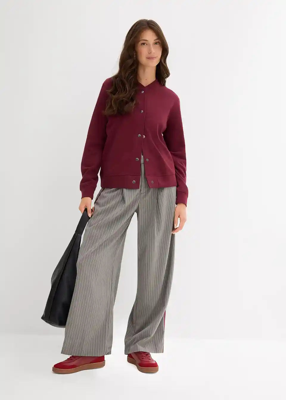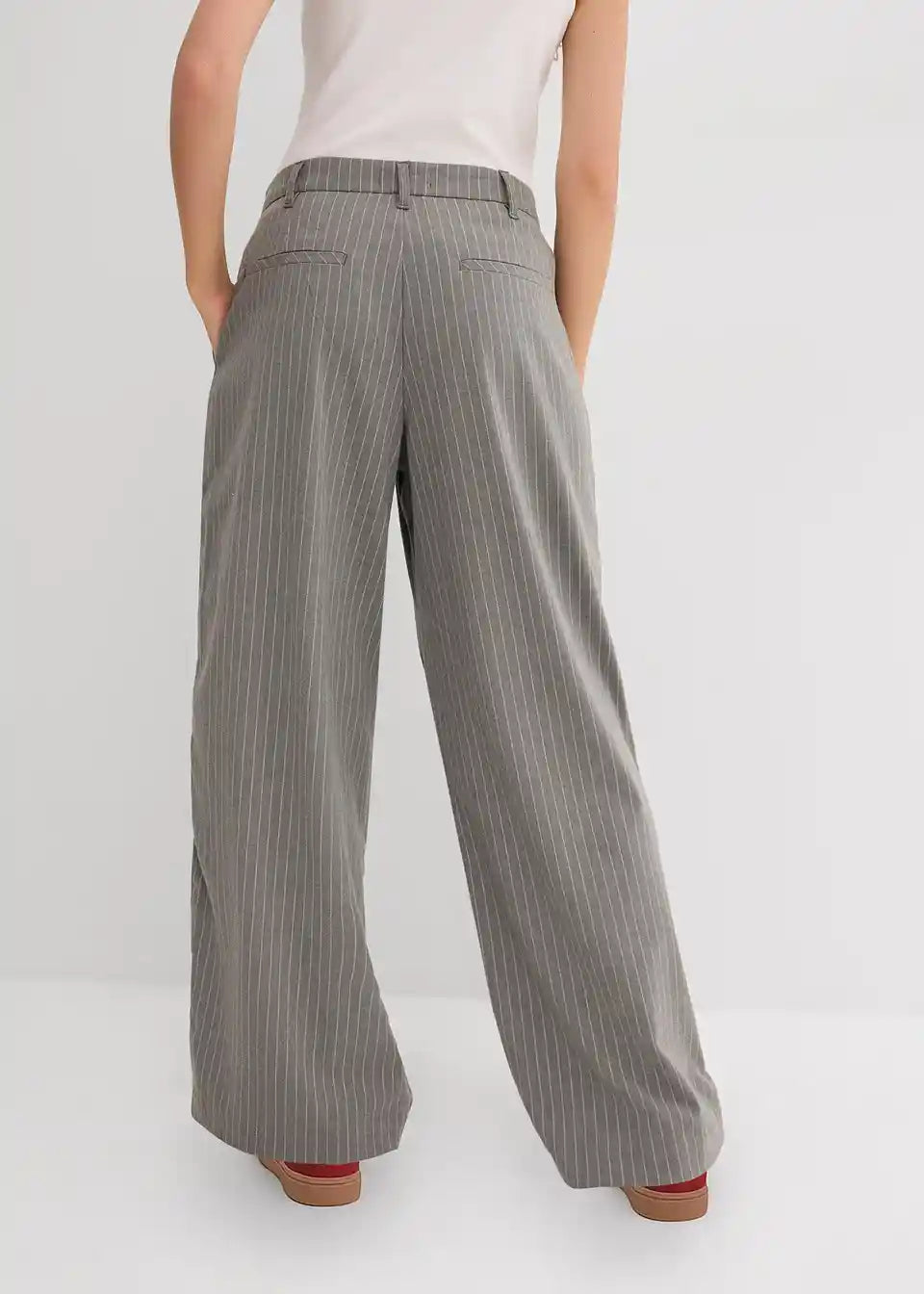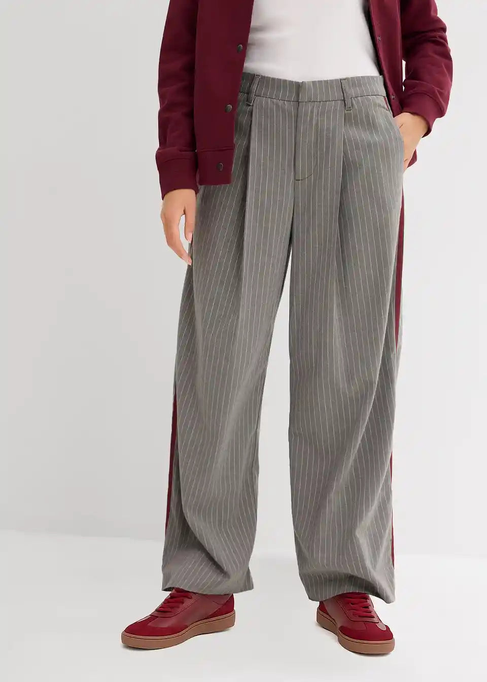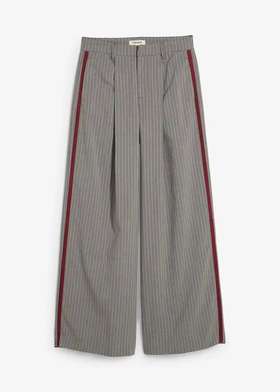 Široko krojene hlače z všitki v pasu s kontrastnimi črtami