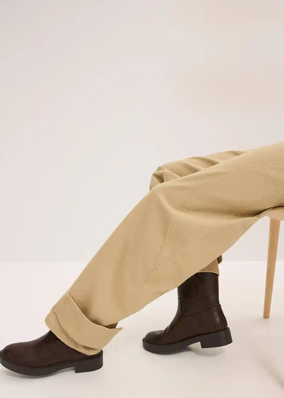 Moderne hlače iz kepra z visokim pasom v balonastem kroju z zapenjanjem z gumbi na spodnjem robu