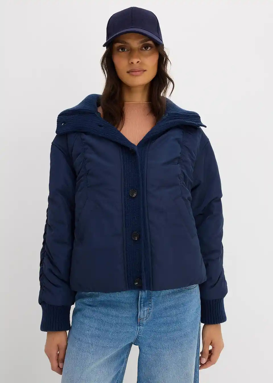 Vatirana jakna s pleteno patentno obrobo in detajli naborkov