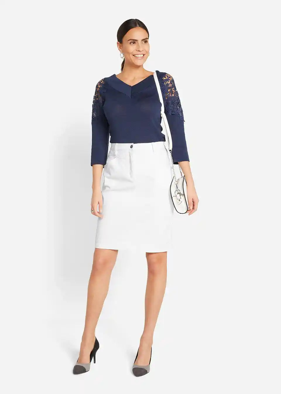S tem klasičnim jeans krilom ne morete zgrešiti. Zaradi klasičnega kroja, ravne oblike ter enostavne barve je krilo zelo vsestransko. Modnim ženskam ponuja različne kombinacije - bodisi z ležerno majico s potiskom za bolj športno različico ali z elegantno bluzo za tople dni v pisarni - to jeans krilo je primerno za vse priložnosti in različne zgornje dele.