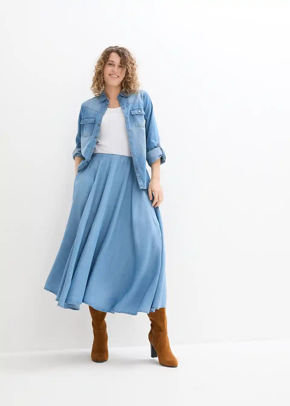 Lyocell krilo z udobnim pasom in žepi v midi dolžini