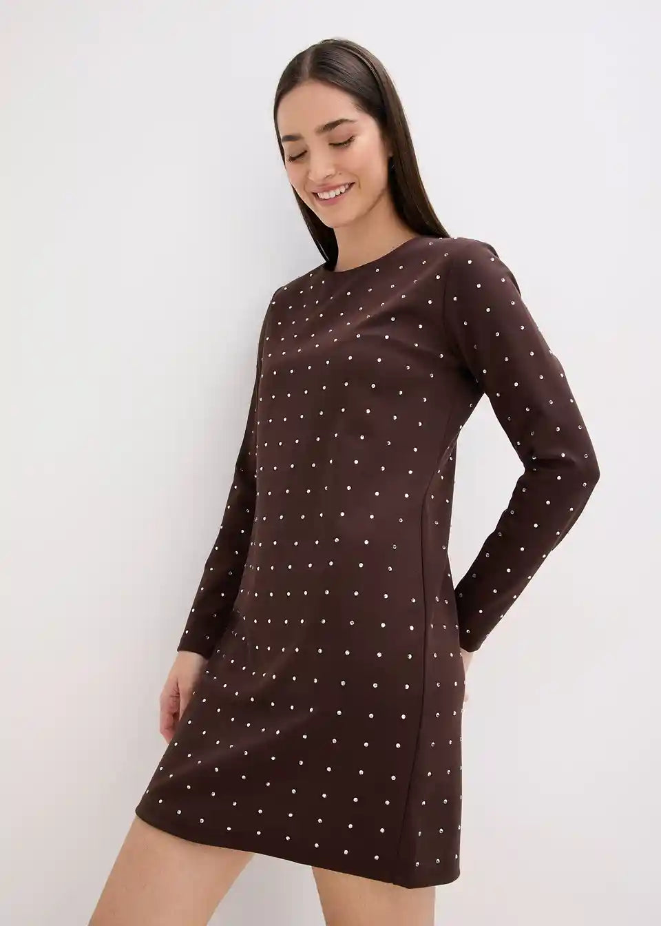 Po telesu poudarjeno krojena obleka iz Punto Di Roma jerseyja z okrasno bleščečo aplikacijo ter z zadrgo zadaj