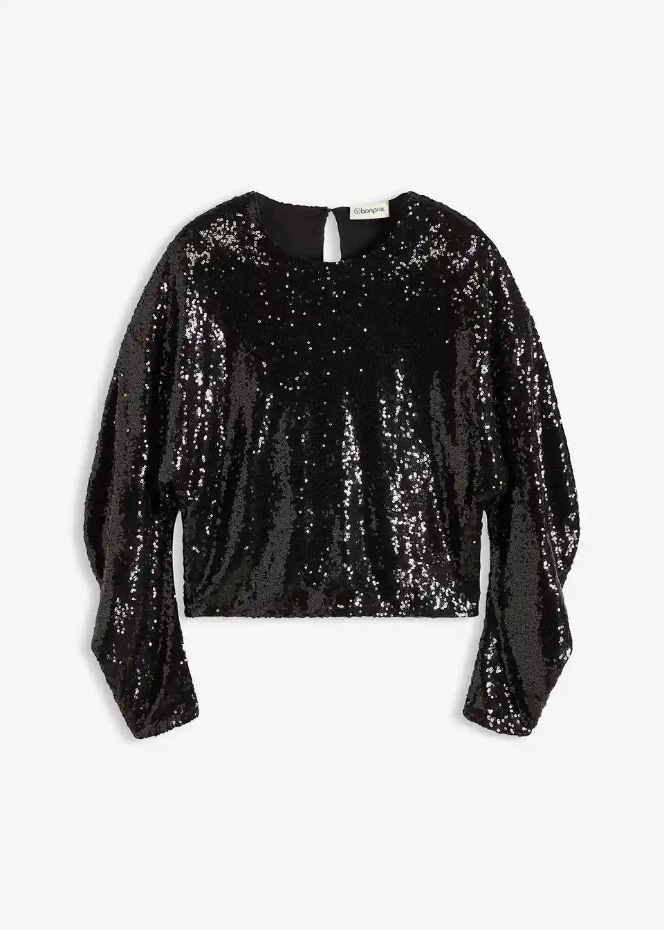 Modna majica z bleščicami in dolgimi rokavi, voluminoznimi rokavi v ohlapni obliki in gumbom za zapenjanje zadaj na izrezu