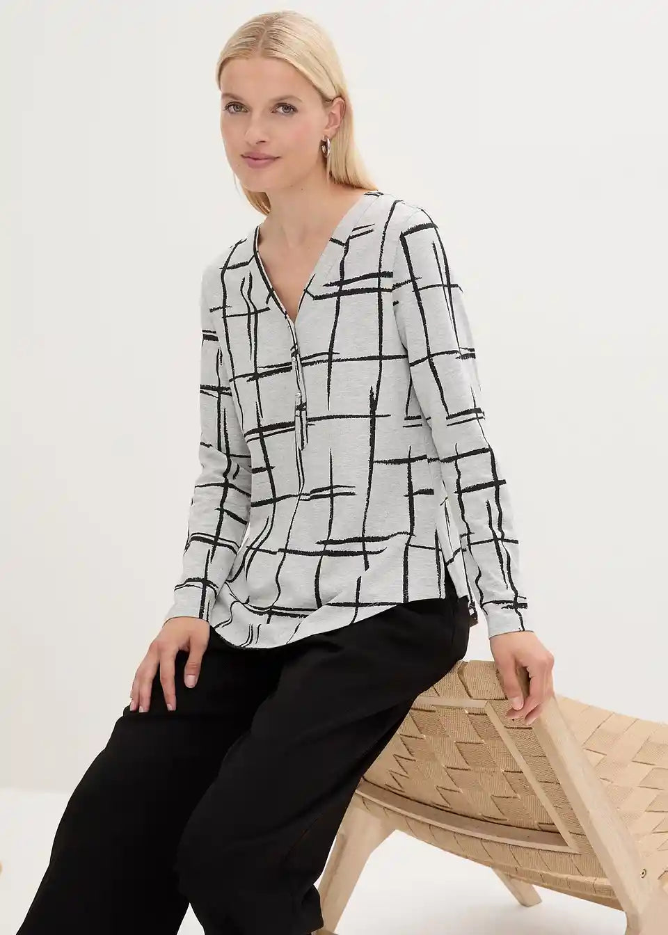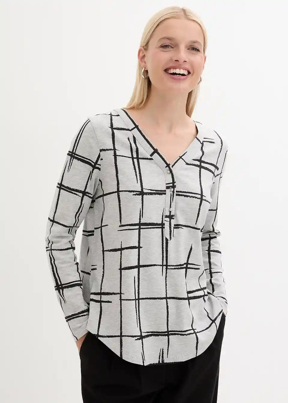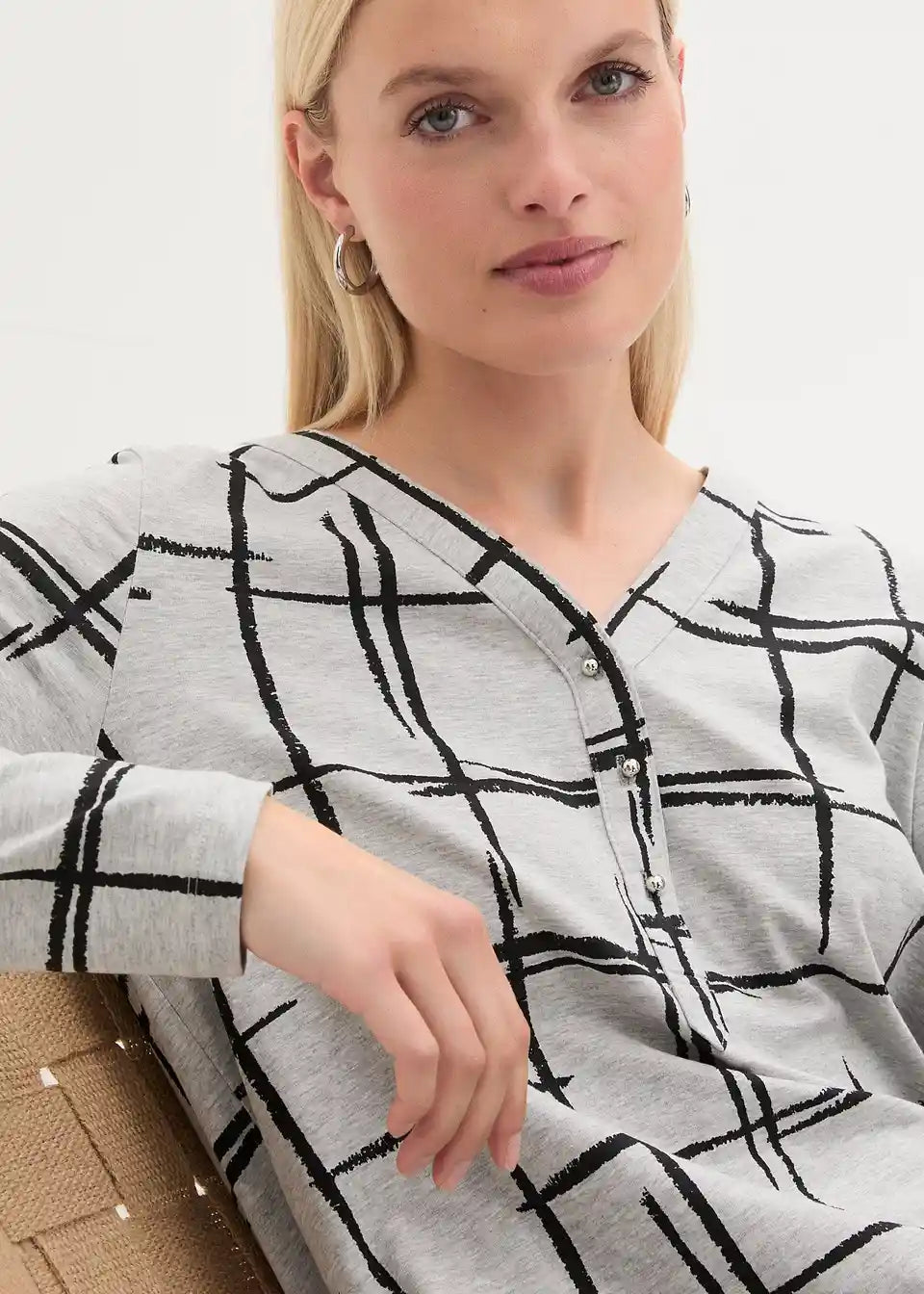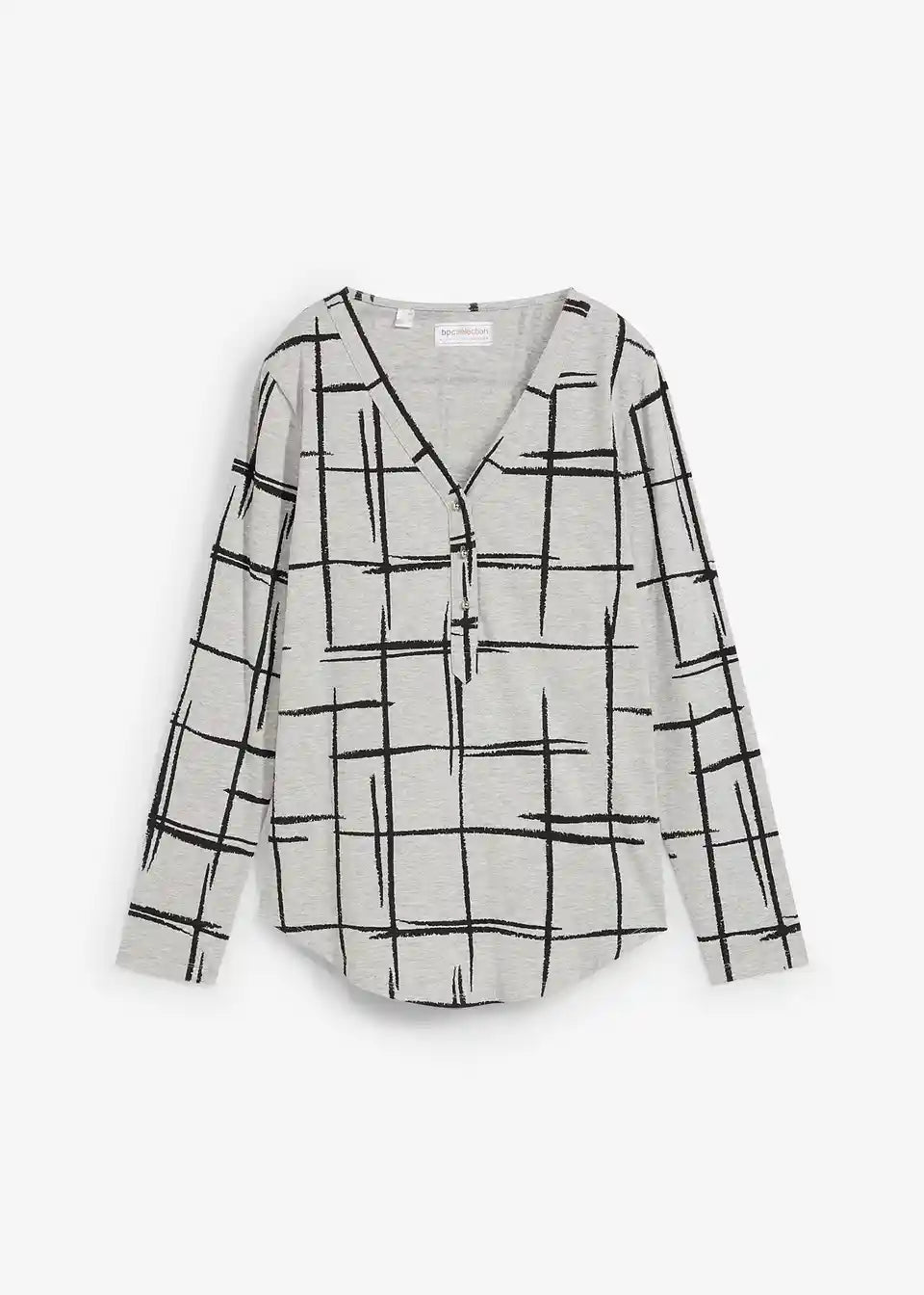 Čudovita dolga majica z zaobljenim robom in zapenjanjem na gumbe