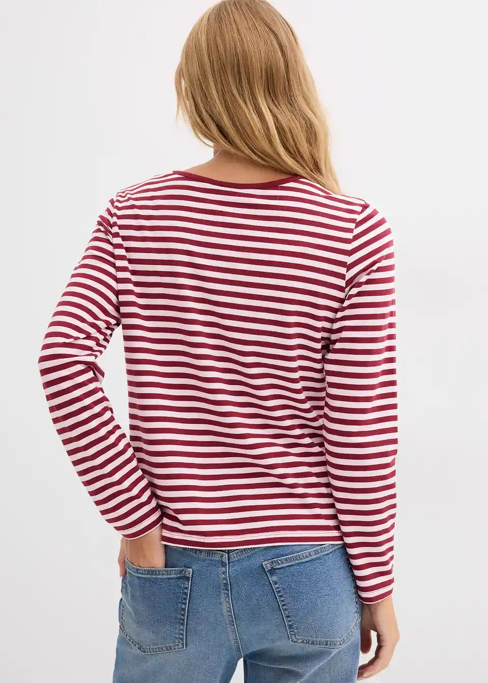 Črtasta majica z dolgimi rokavi in deležem bombaža