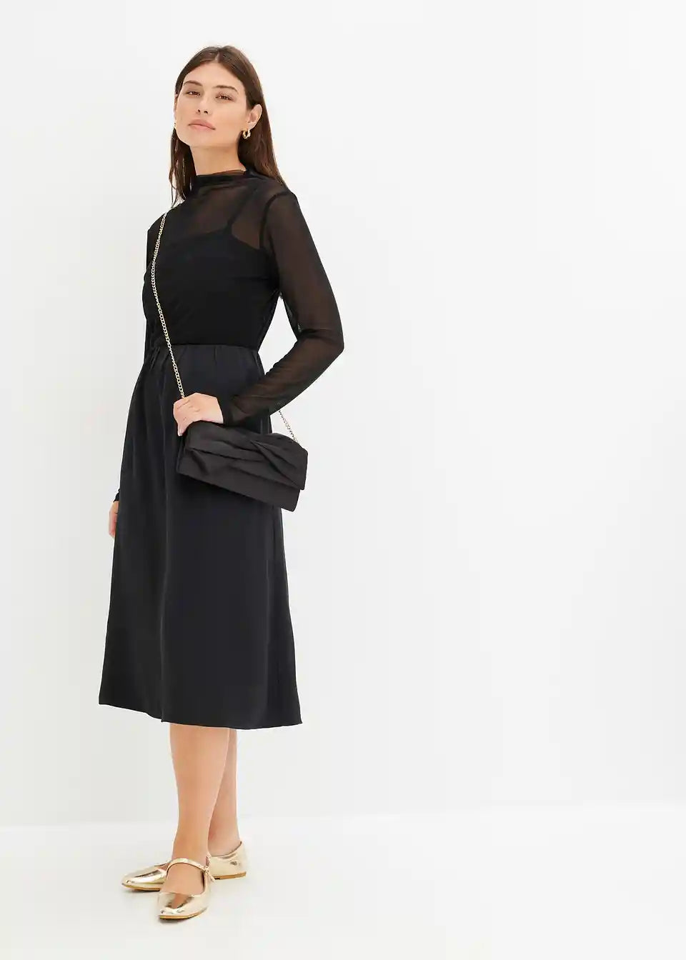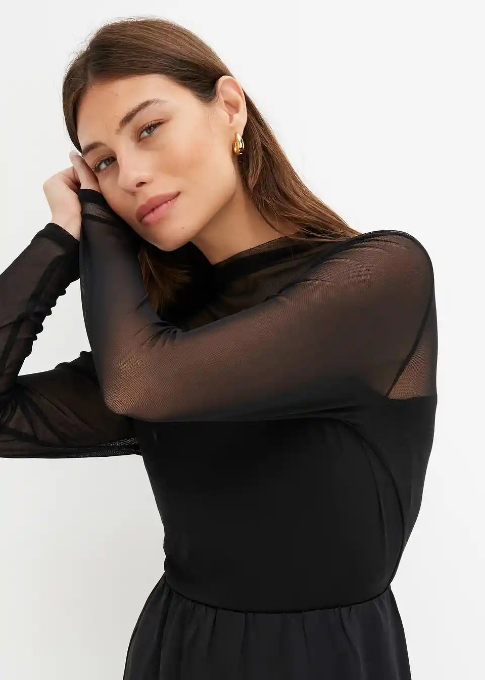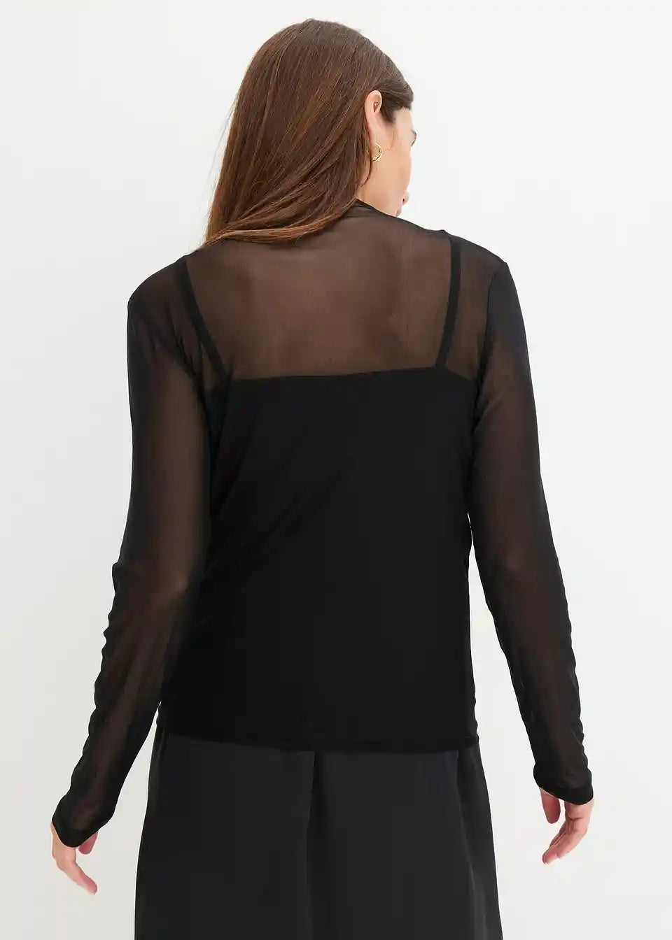 prilegajoča majica z dolgimi rokavi iz mrežice in stoječim ovratnikom