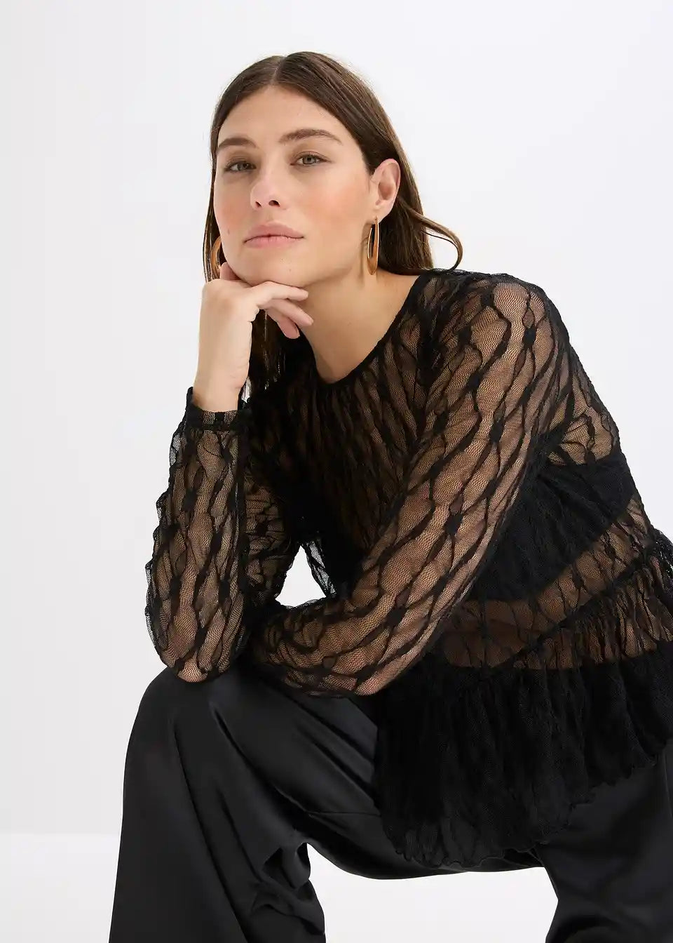 Majica z dolgimi rokavi iz čipke