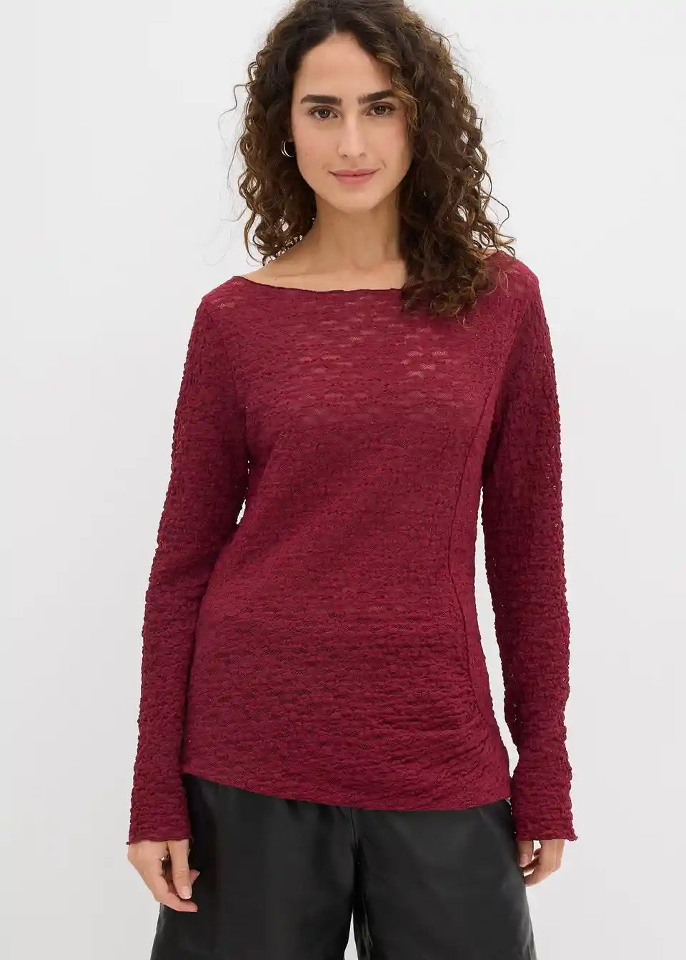 Oprijeta majica z dolgimi rokavi iz čipke