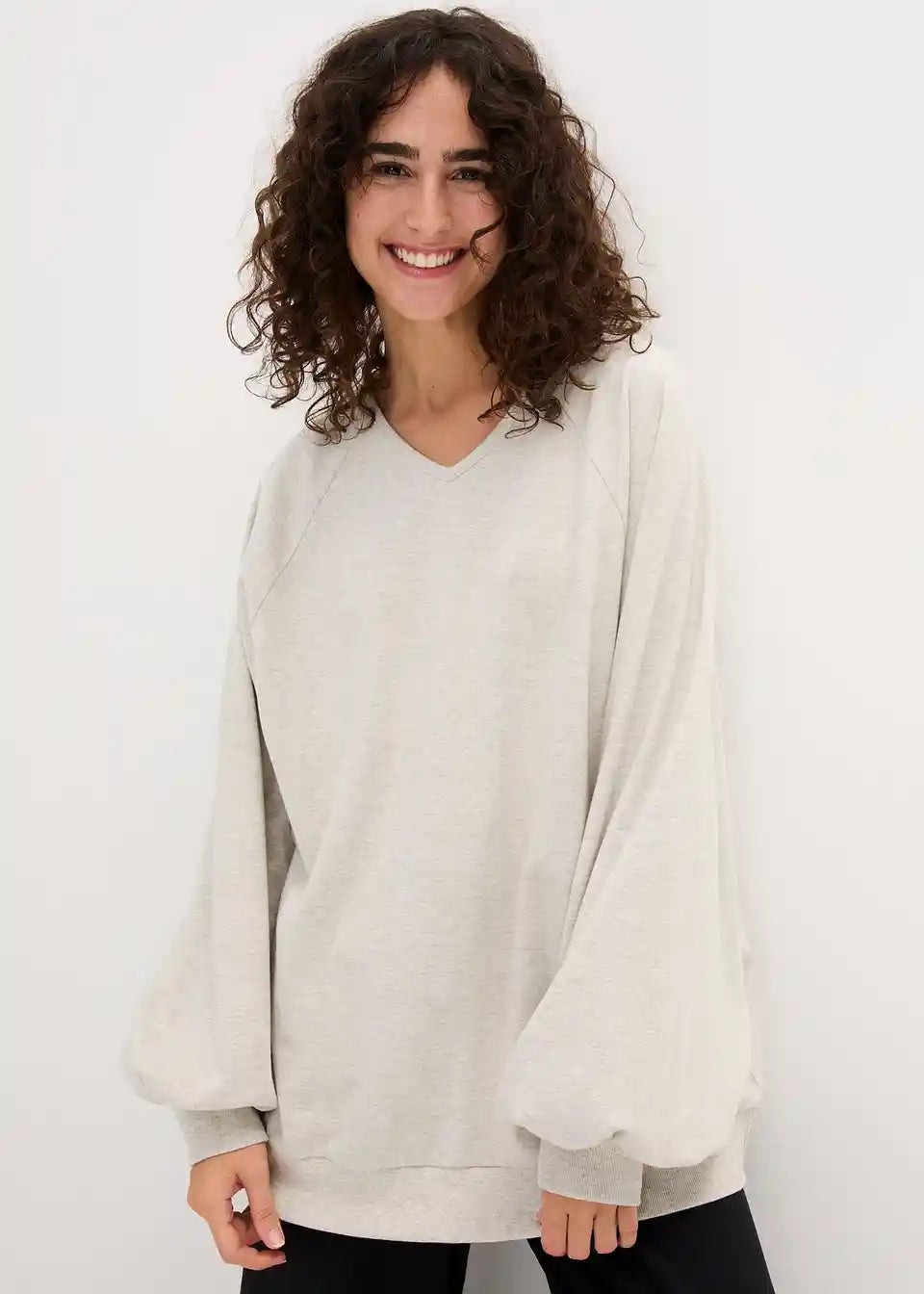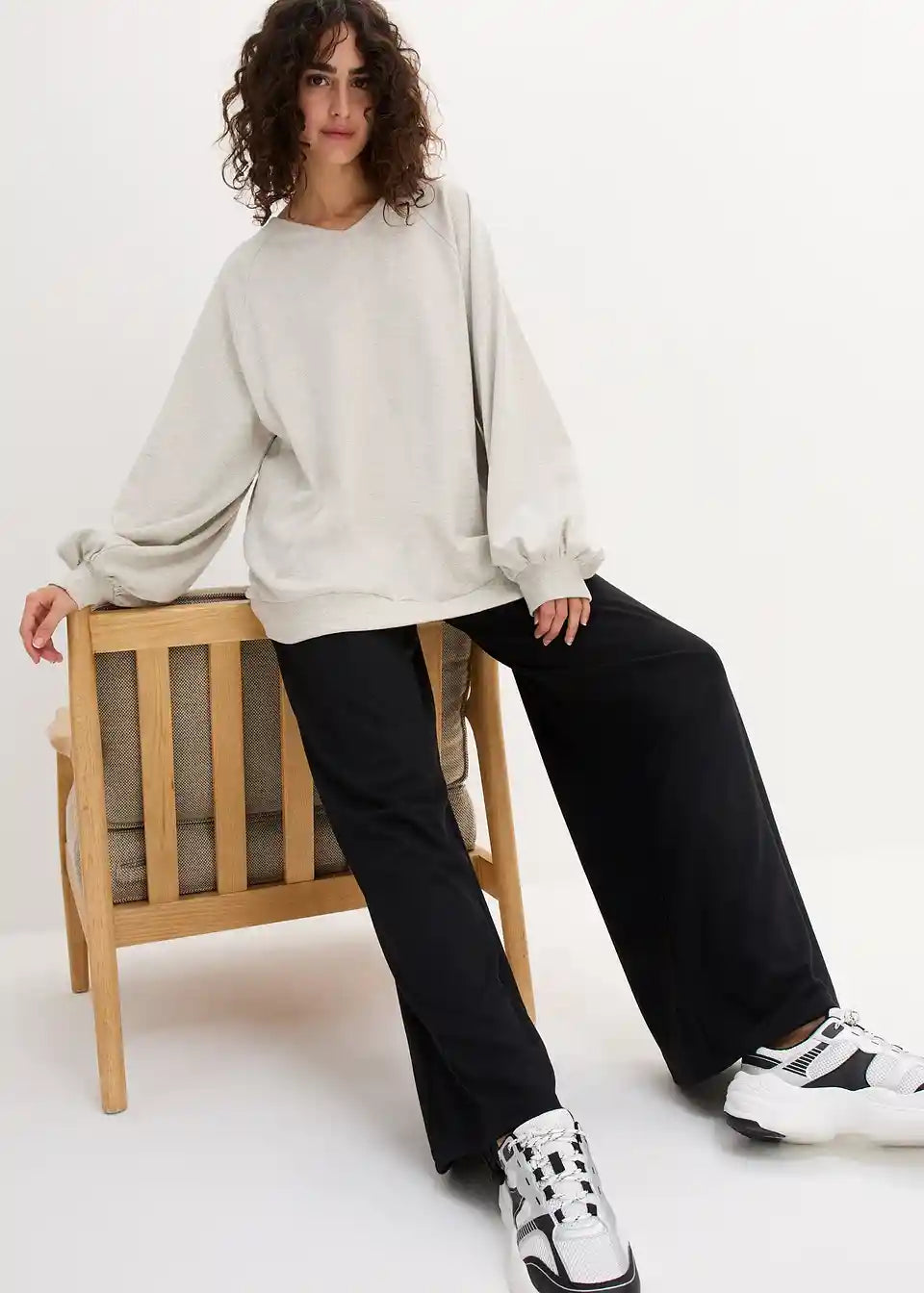 Udobna Oversize-majica s krilastimi rokavi in rebrastimi detajli