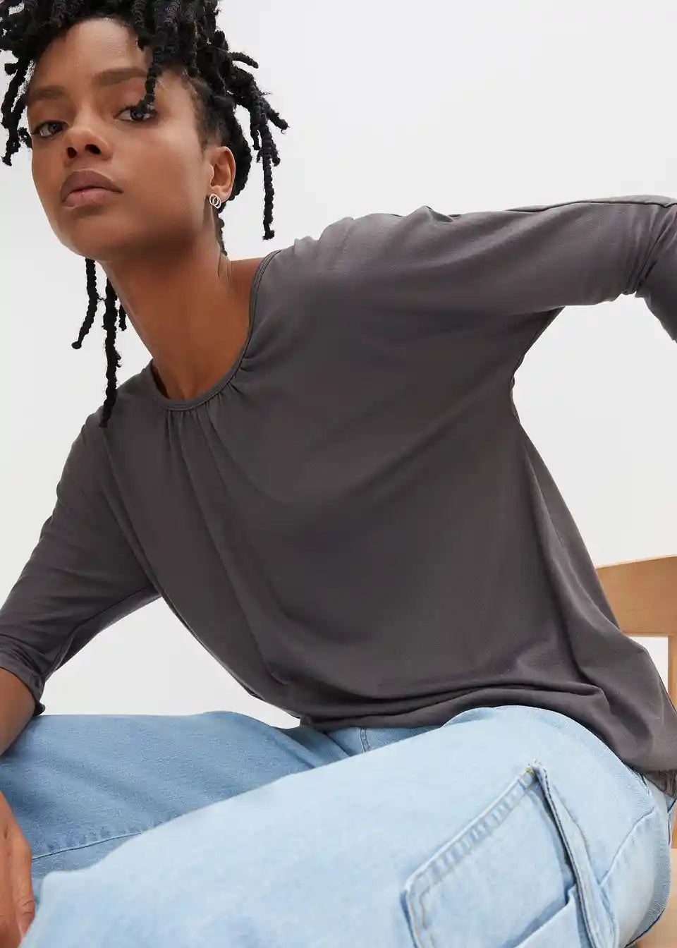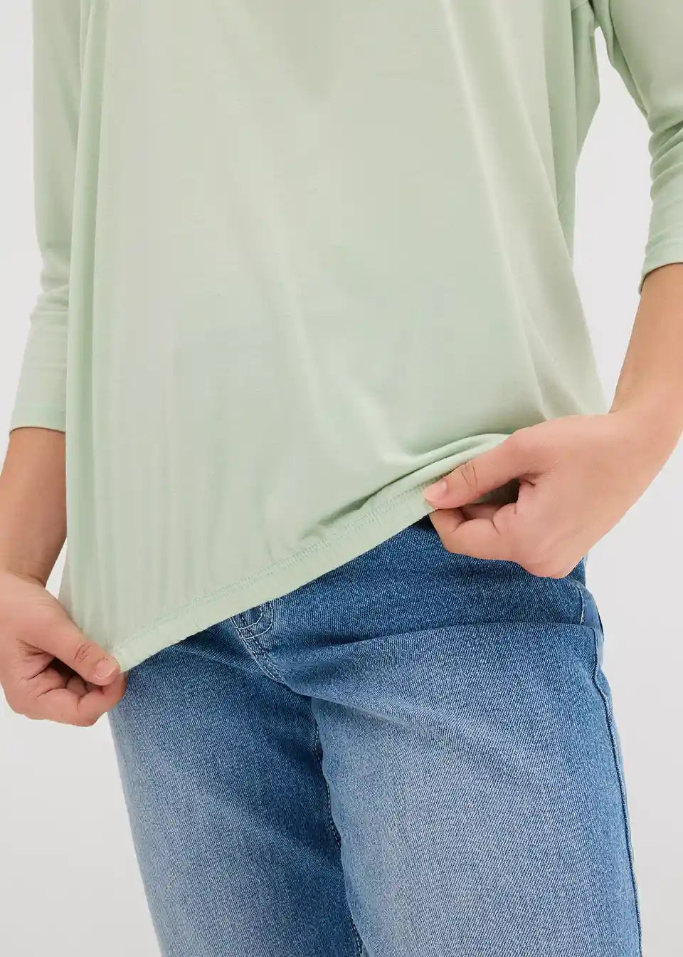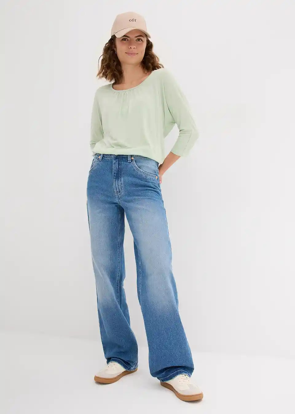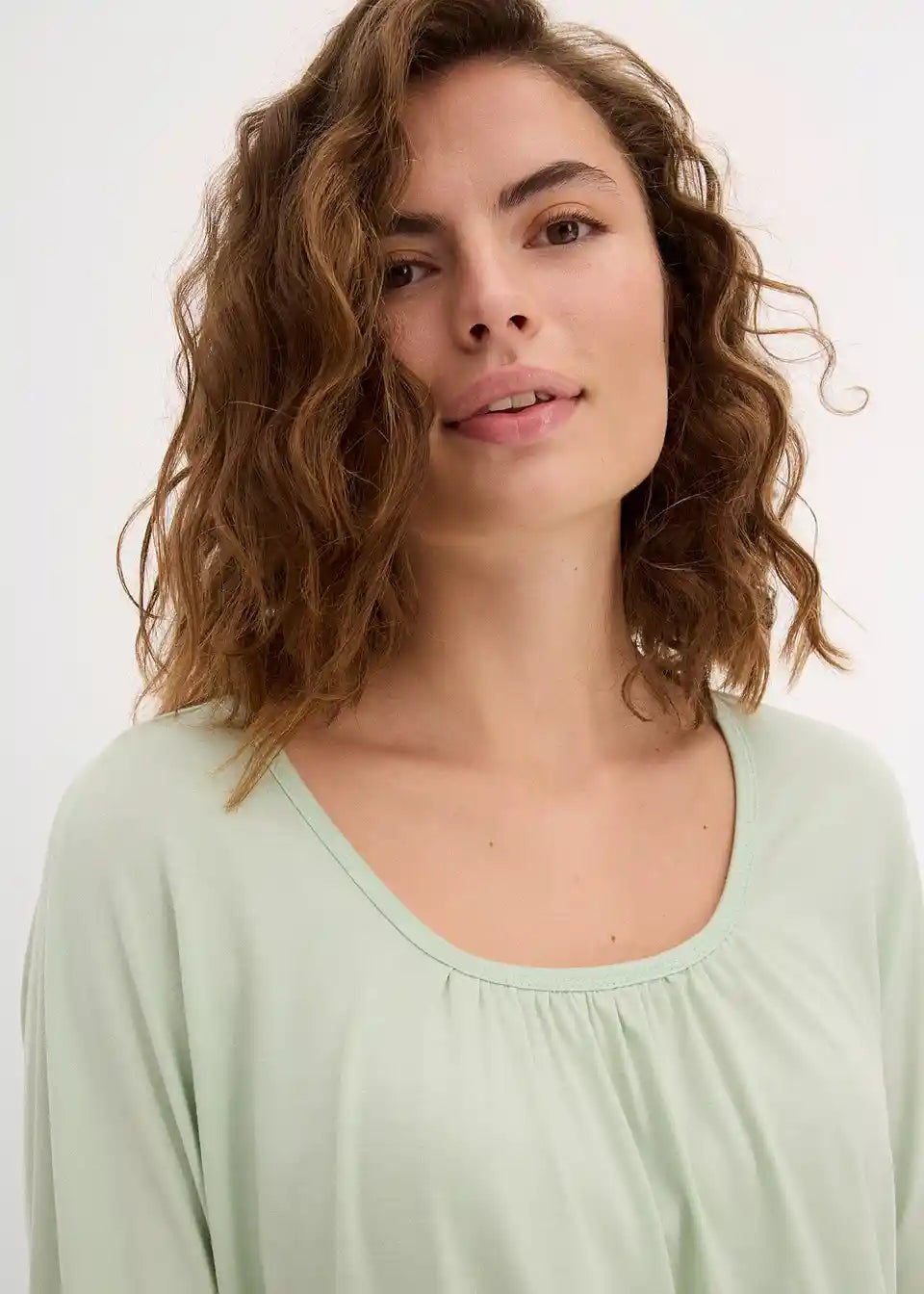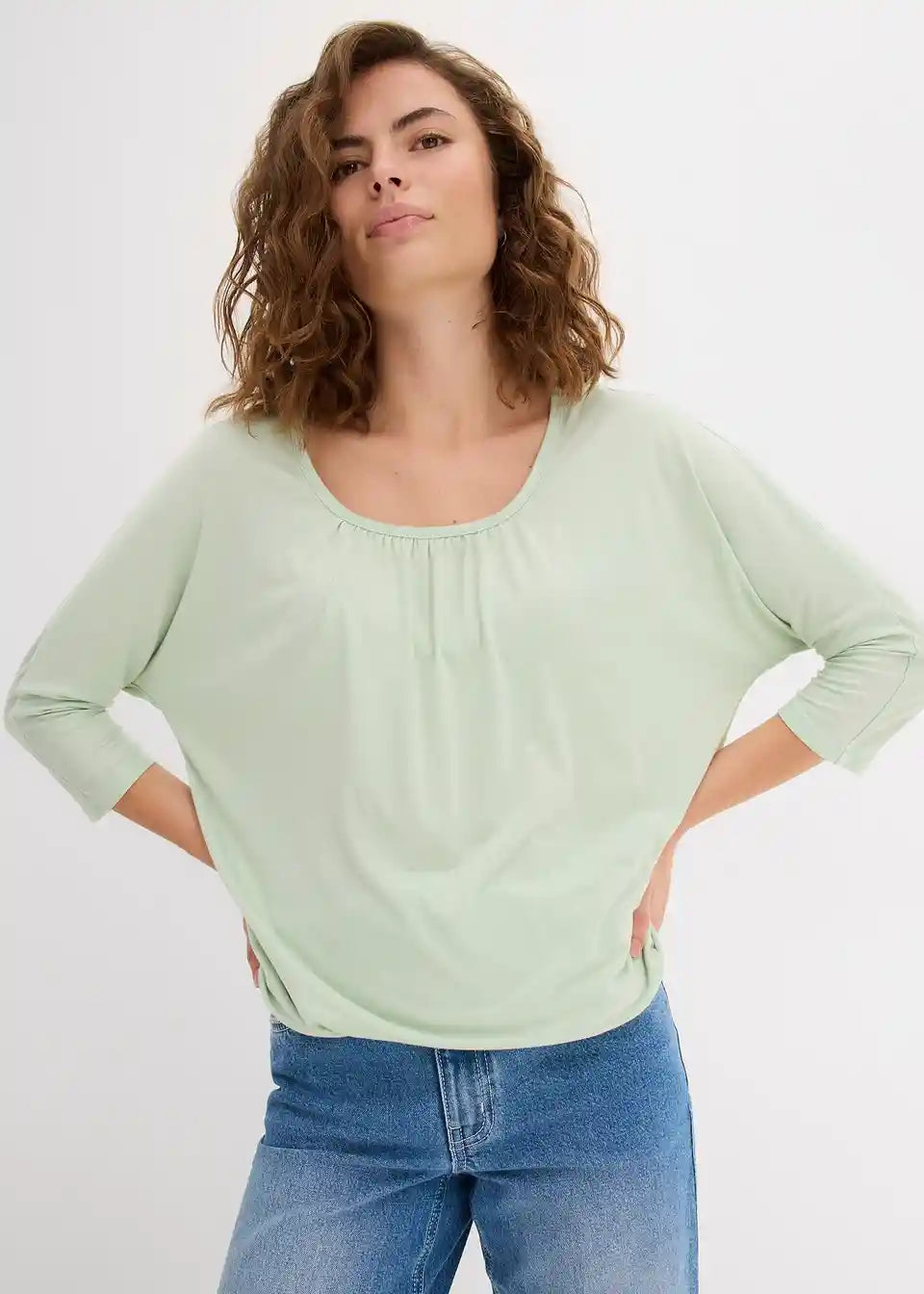 Kul Oversize-Shirt v neustavljivo svetlečih barvah je odličen osnovni kos za modne eksperimente. Topi v kontrastnih barvah poskrbijo za privlačne poudarke. Izjemno velik okrogel izrez omogoča kombinacijo z rutami in vpadljivimi verižicami. Z mini krilom deluje privlačno, z jeansom sproščeno. Vsestransko nosljiva majica navduši s stilskimi netopirskimi rokavi, elastika na robu pa omogoča sproščeno padec majice, ki objema postavo. Ta prijetna za nošenje majica ima vse možnosti, da postane najljubši kos v garderobi.