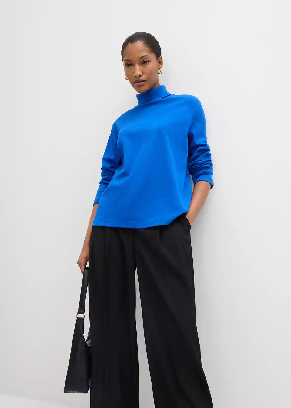 Zgornji del za vitko postavo z visokim ovratnikom iz ekološkega bombaža
