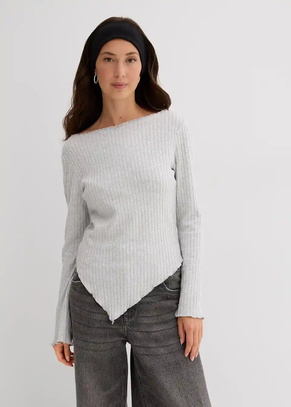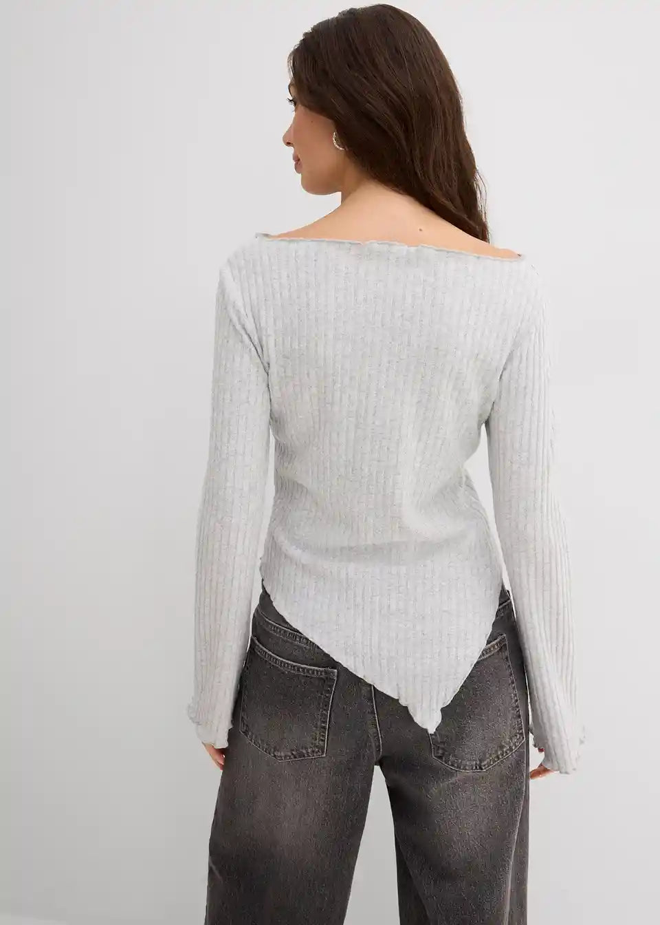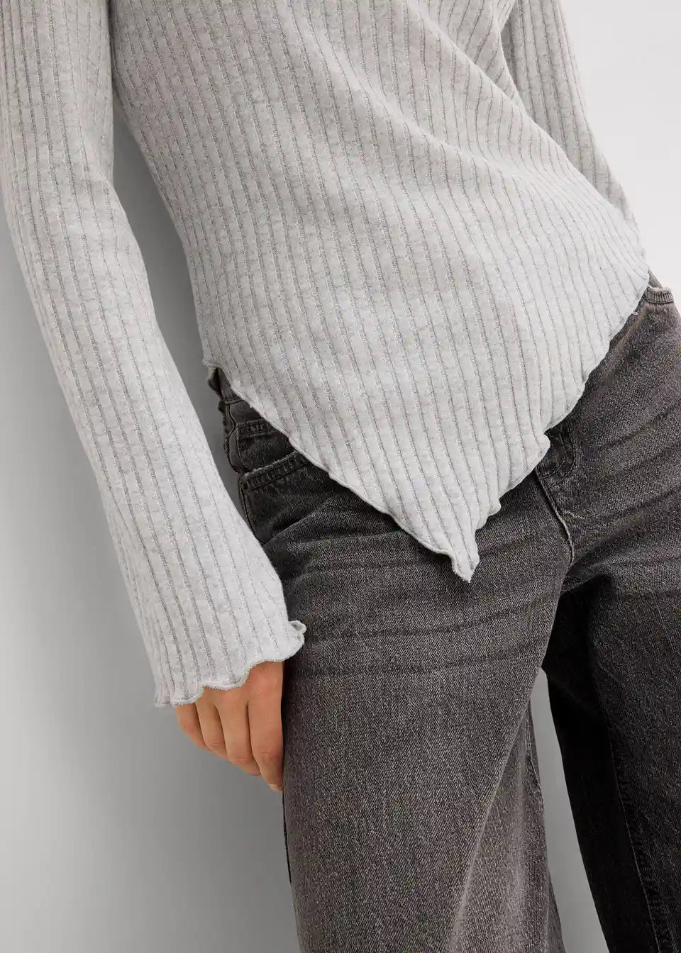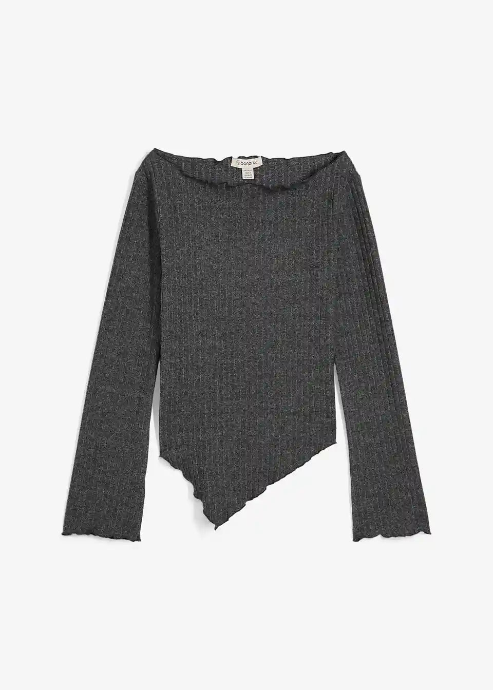 Udobna rebrasta majica iz mehke viskozne mešanice z asimetričnim spodnjim robom
