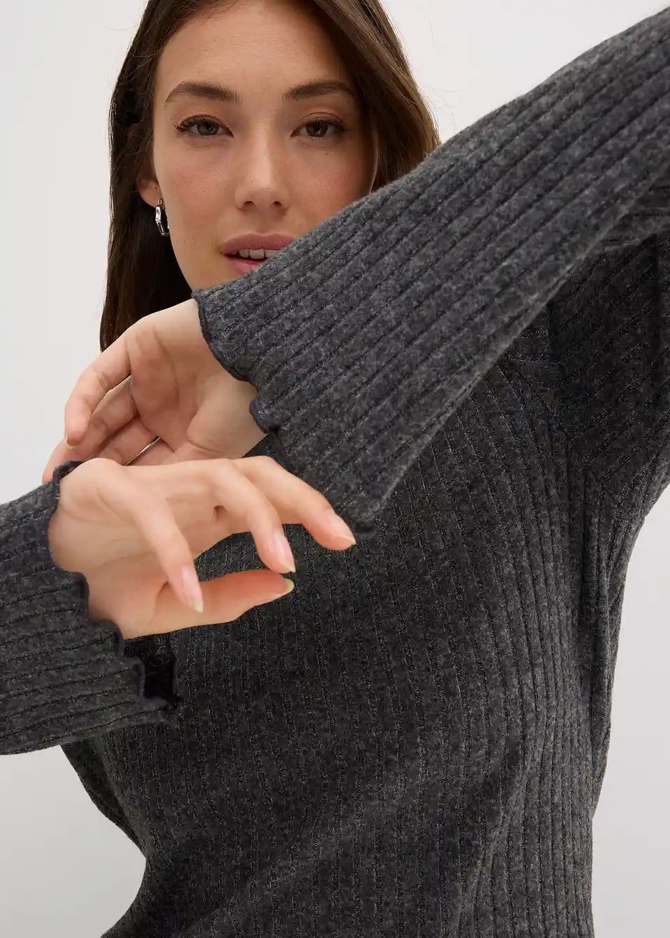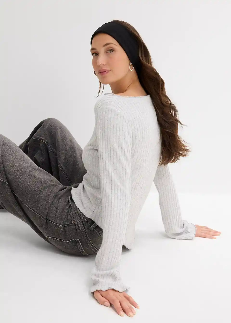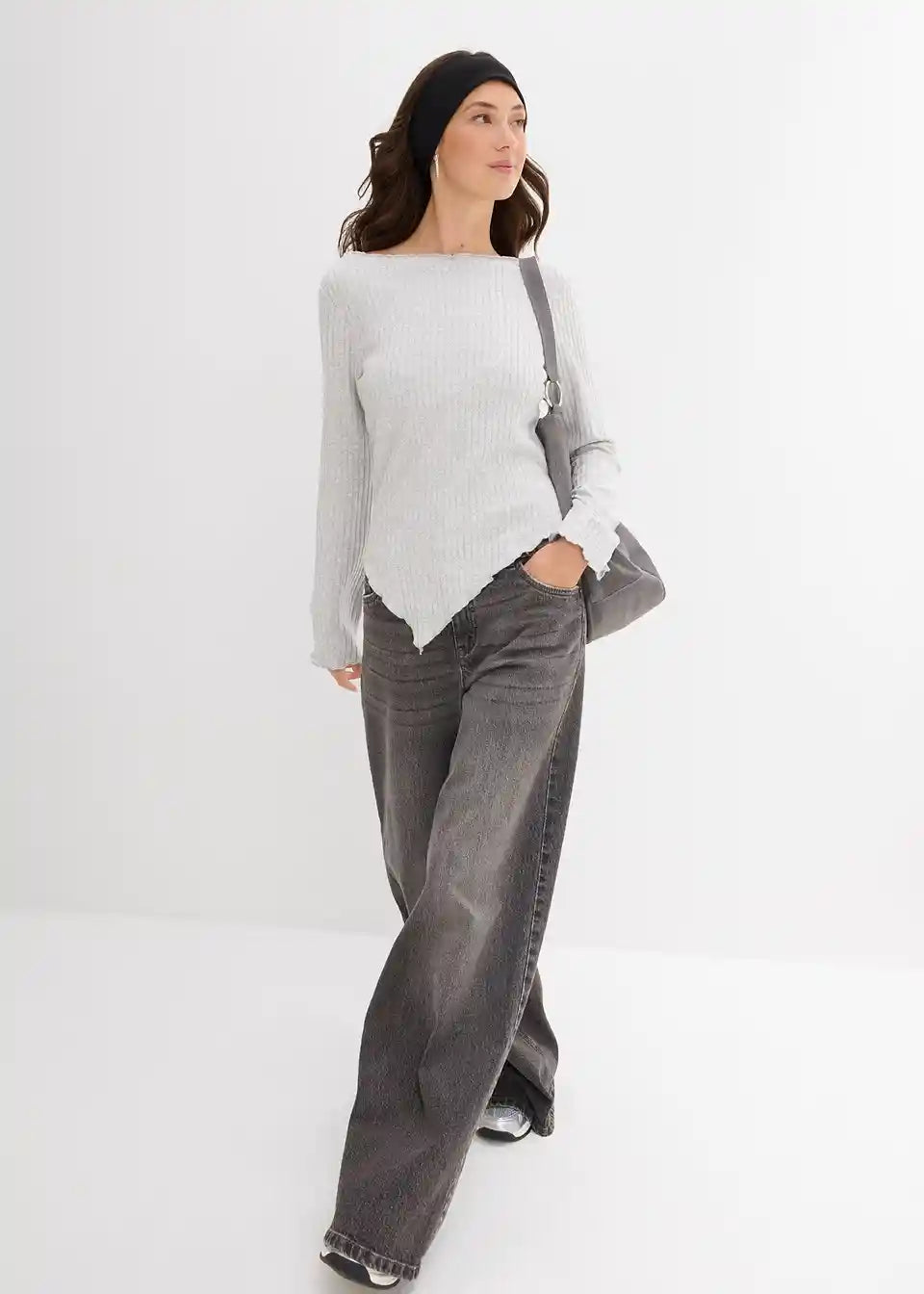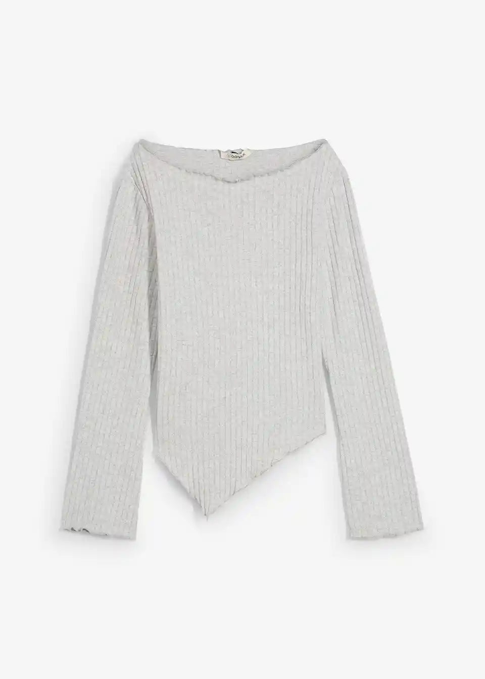 Udobna rebrasta majica iz mehke viskozne mešanice z asimetričnim spodnjim robom