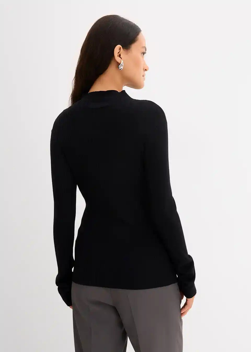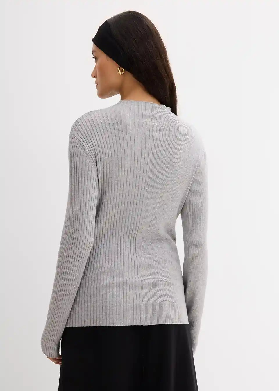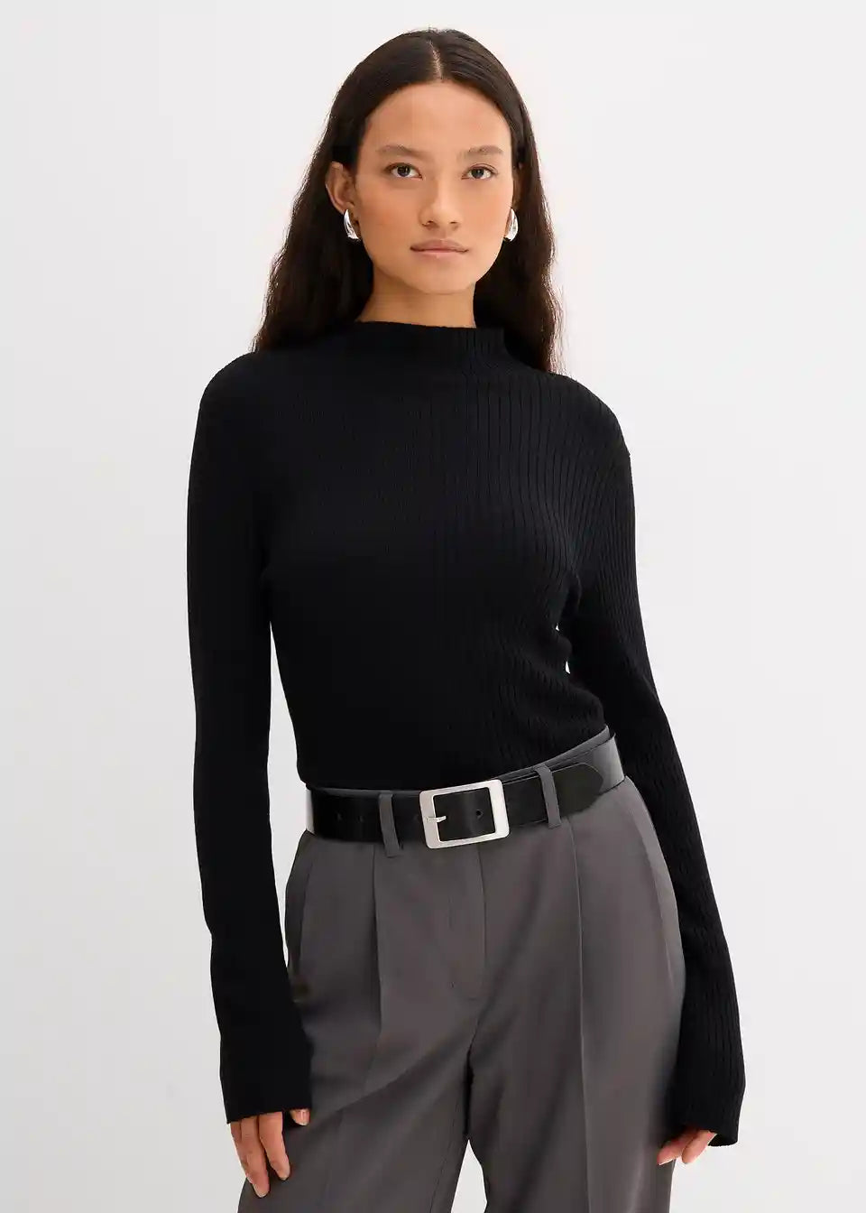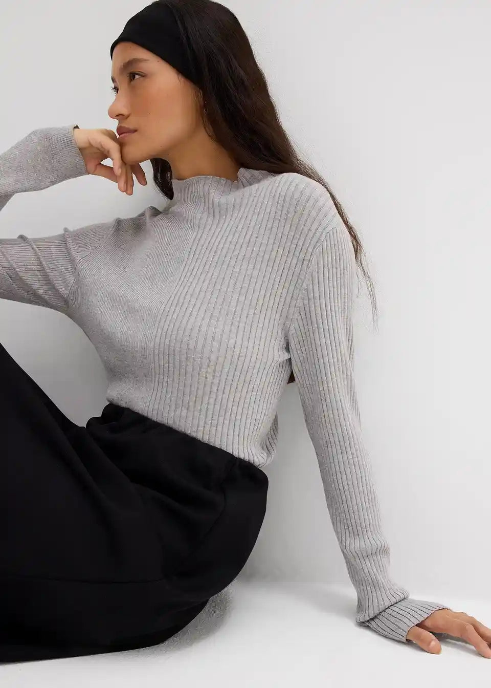 Oprijeta majica s pokončnim ovratnikom in dolgimi rokavi iz rebraste pletenine