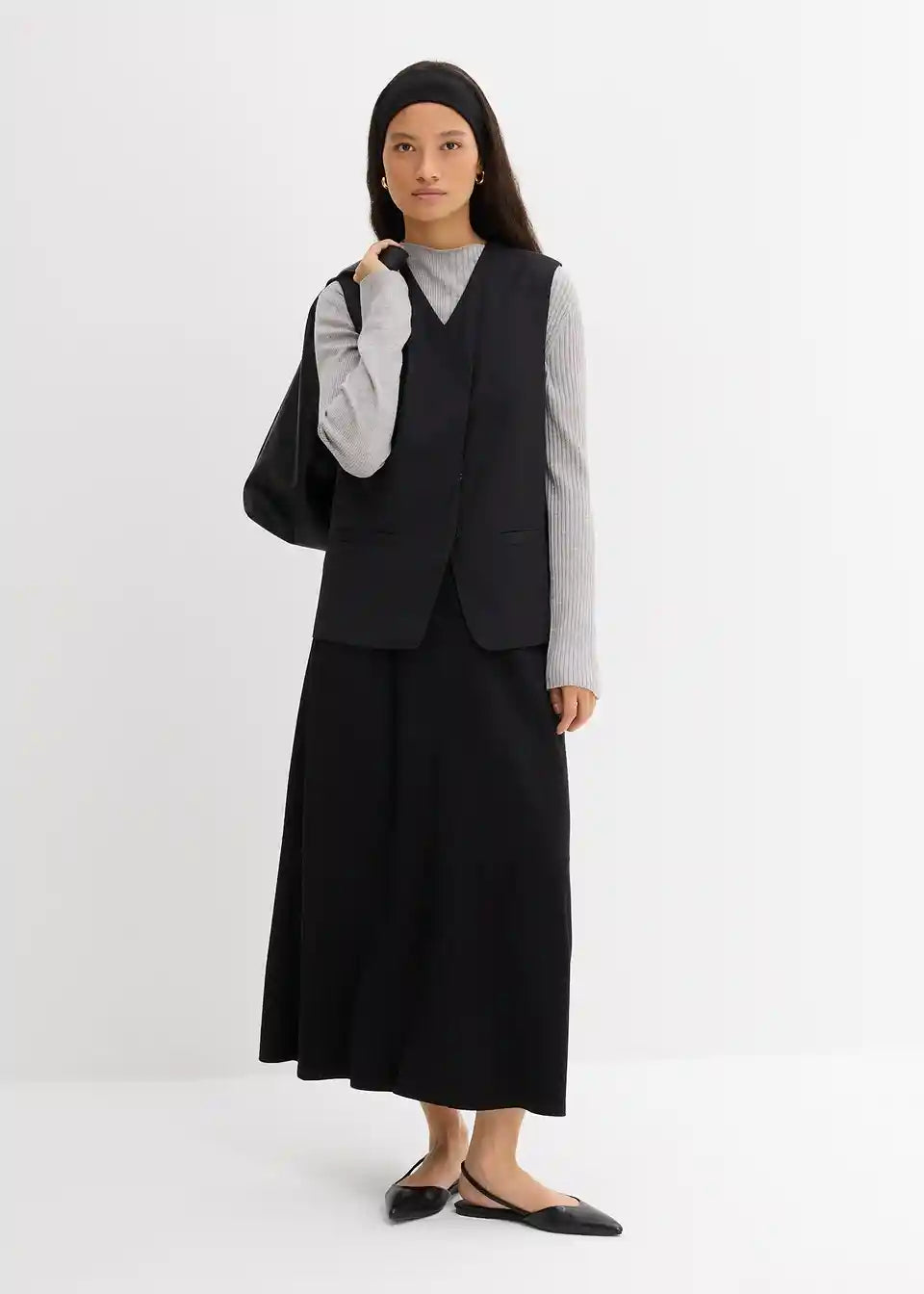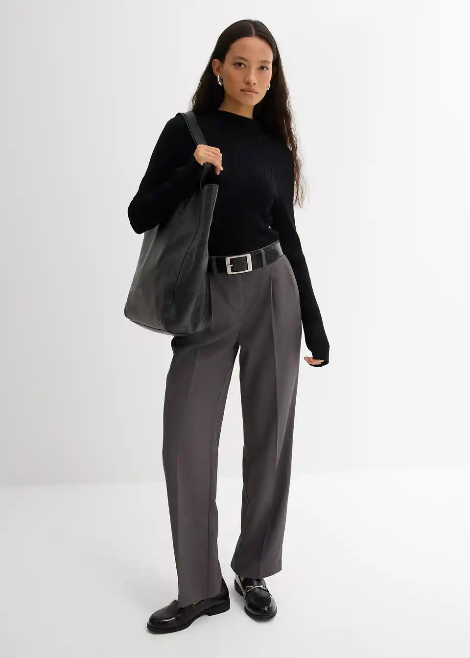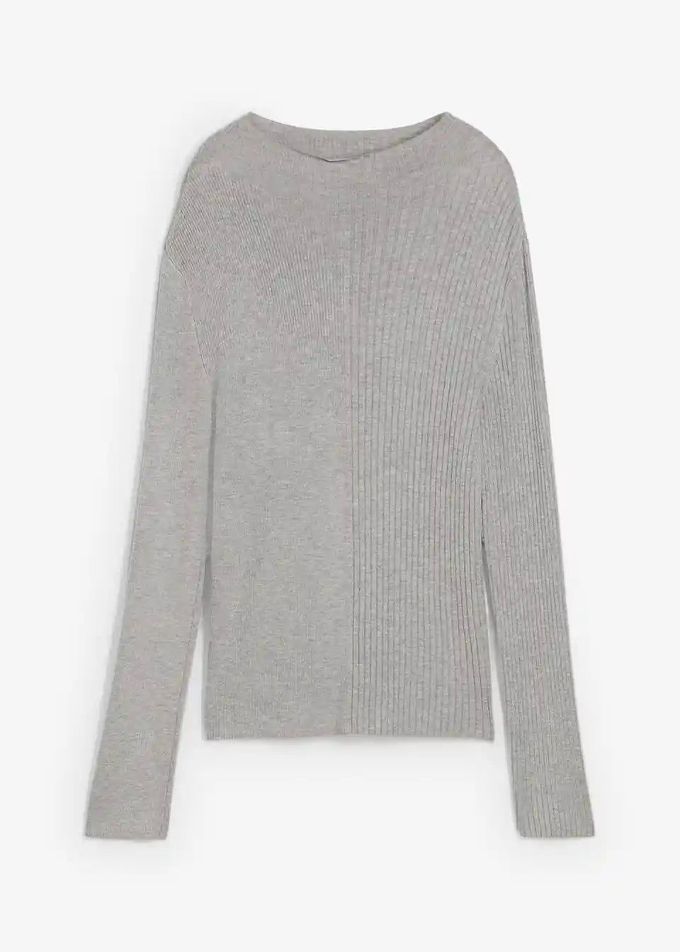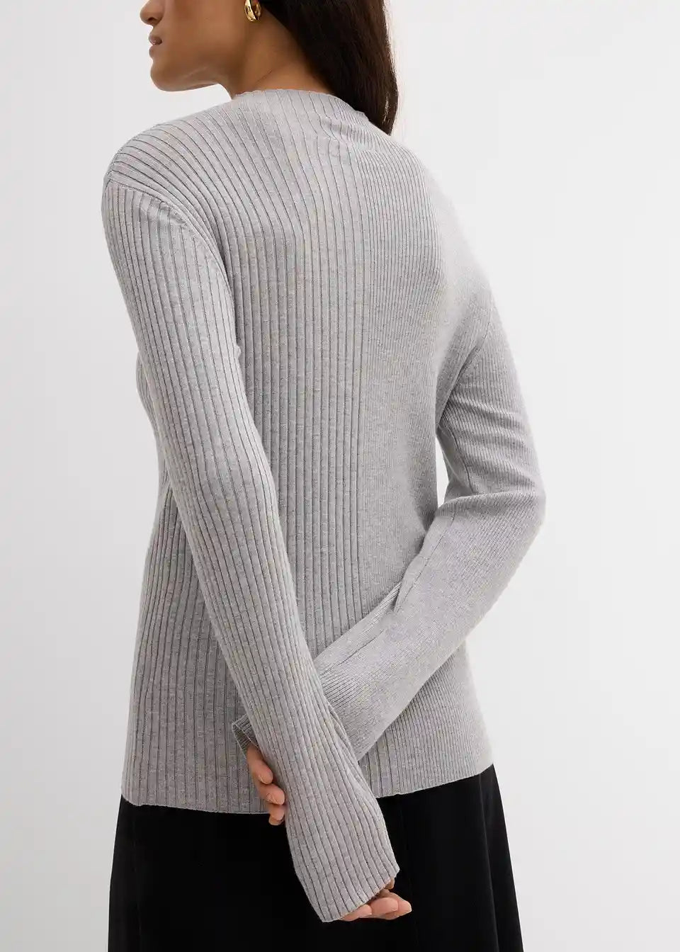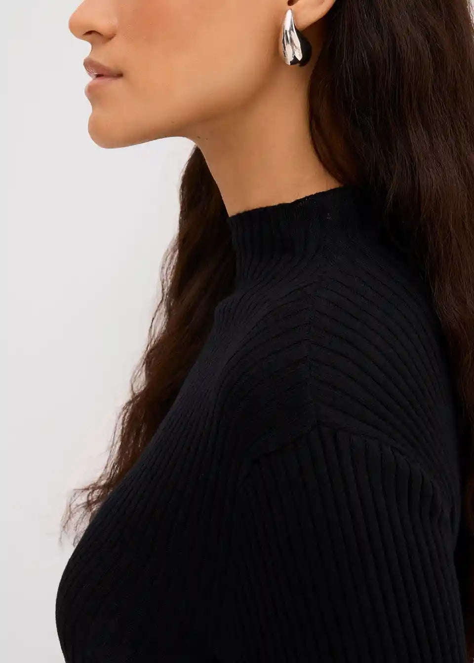 Oprijeta majica s pokončnim ovratnikom in dolgimi rokavi iz rebraste pletenine