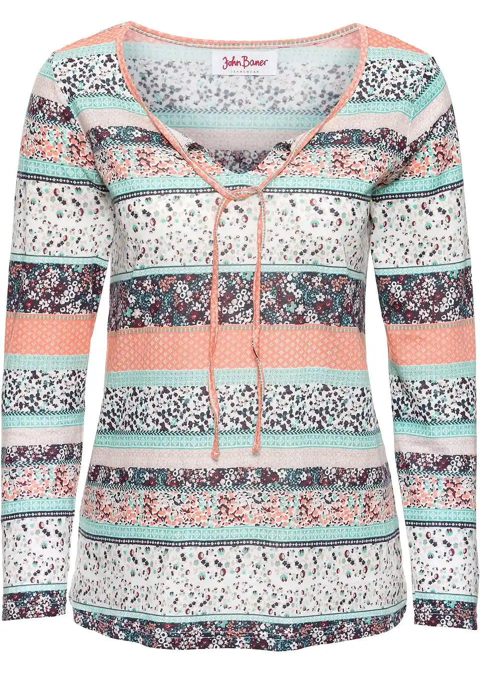 Lepa tunika iz trikoja z dolgimi rokavi znamke John Baner se predstavlja kot sodobna oblačila z udobnim krojem. Ohlapno krojena oblika z dolgimi rokavi in mehka kakovost materiala naredita srajco še posebej prijetno za nošenje. Trendovski detajl je izrez okrogle oblike z V-razporkom, ki ga uokvirjata ozki vezalki. Lepa potiskana tunika iz trikoja v kombinaciji z jeansom in gležnjarji poskrbi za čudovit sproščen videz.