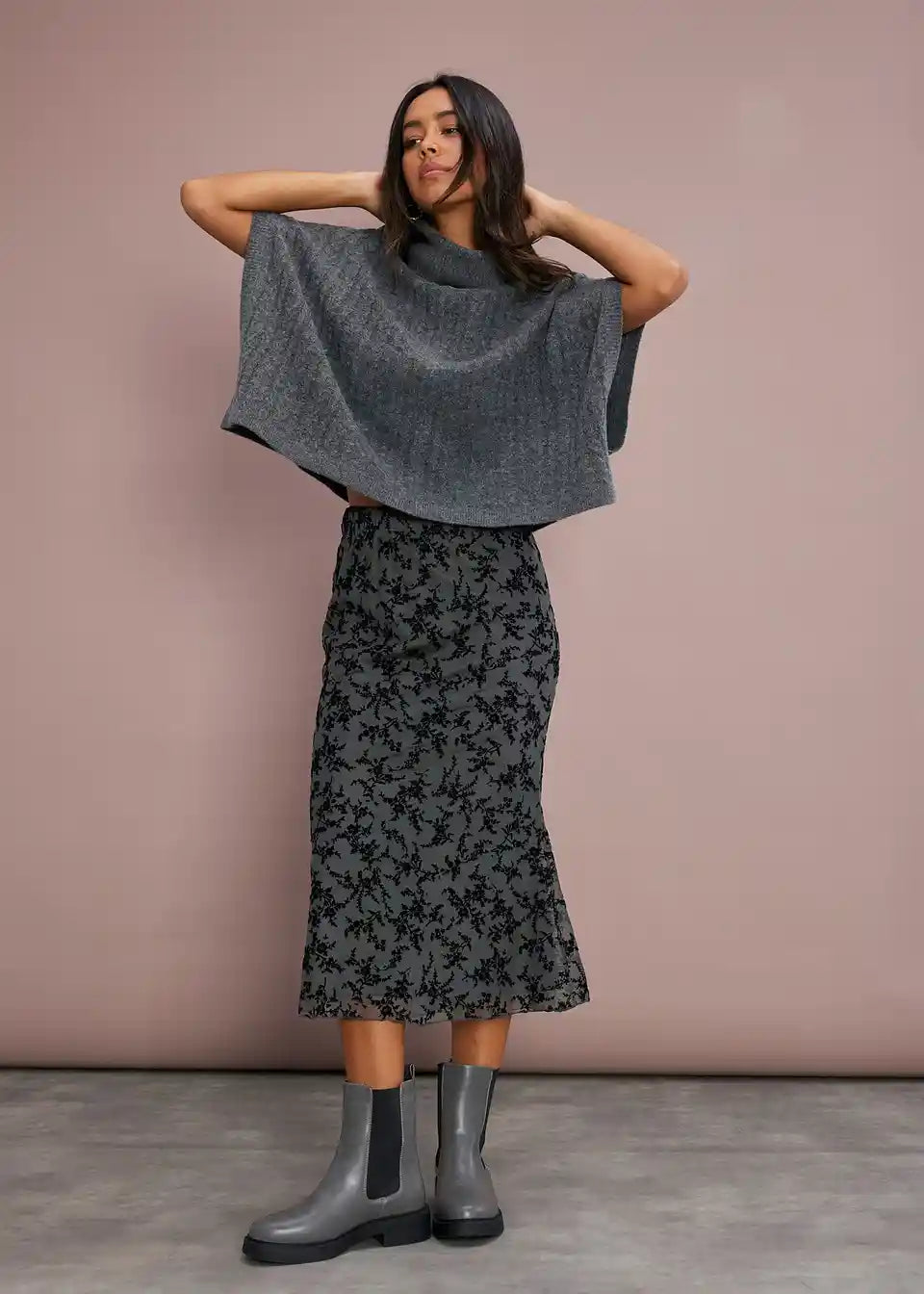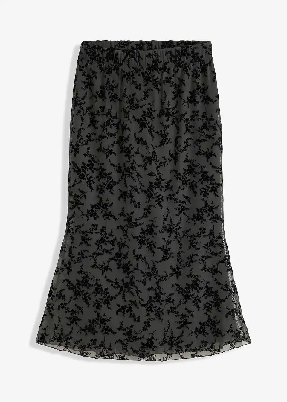 Modno midi krilo iz mreže s kosmatenim potiskom
