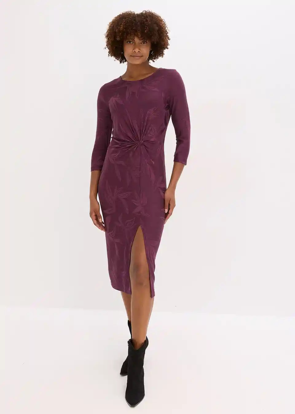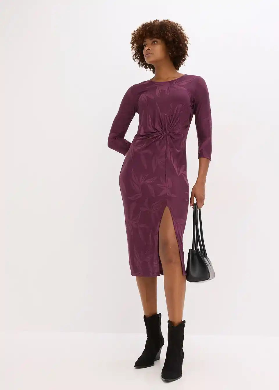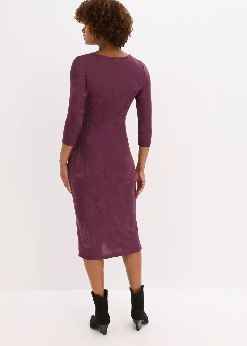Ženstvena obleka iz jerseyja v midi dolžini iz modnega žakarja