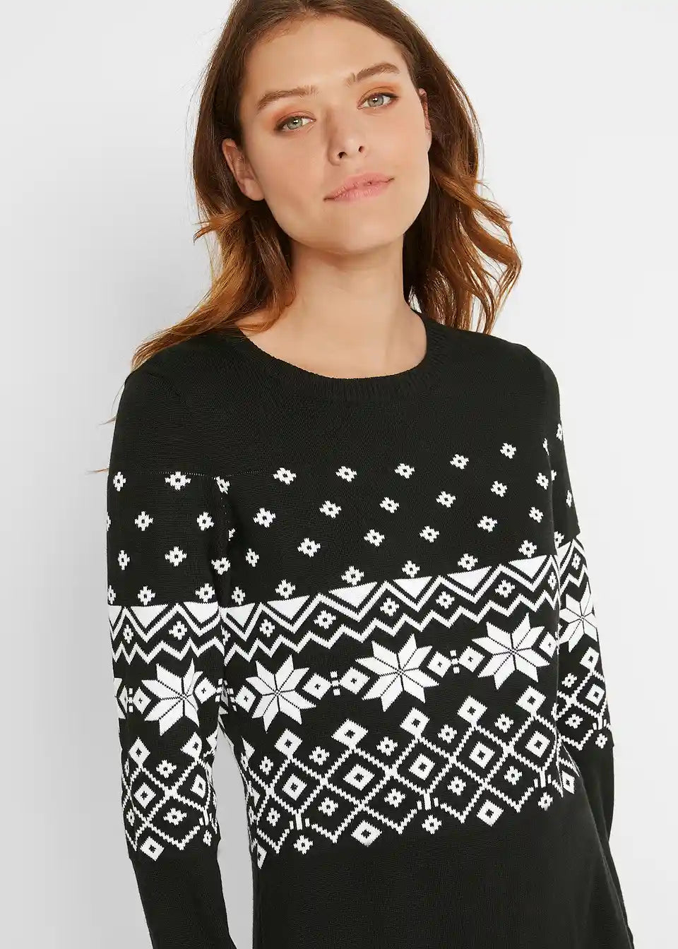 Figuri prijazna Pletena obleka z norveškim vzorcem in razširjenim krilom