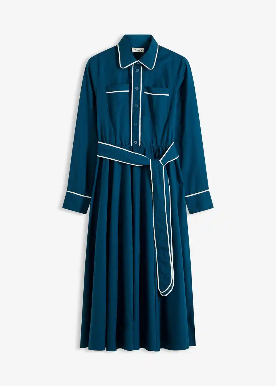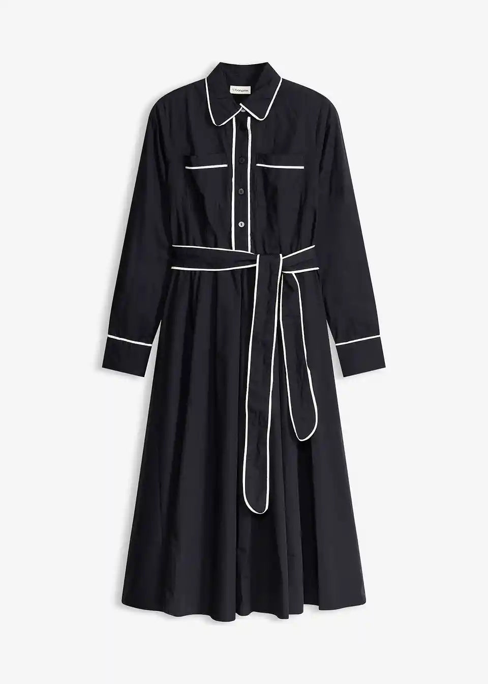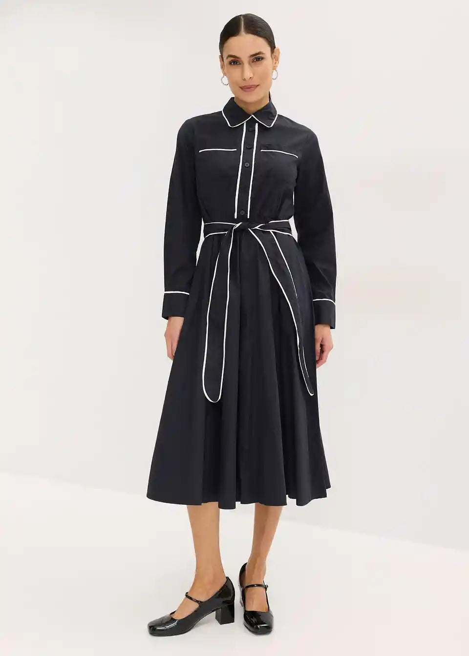 Stilna srajčna obleka z ljubkimi kontrastnimi paspulami