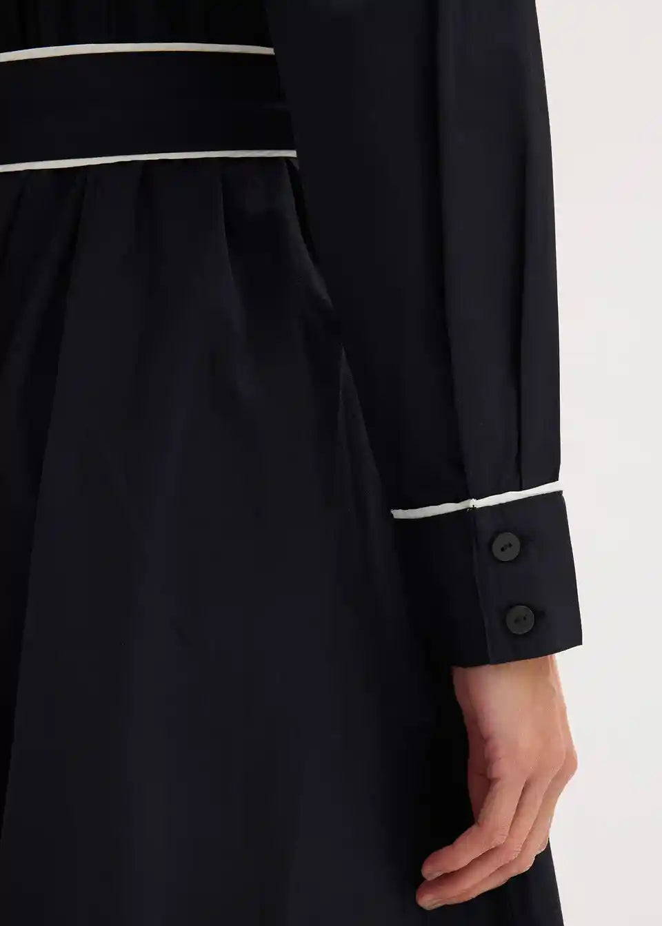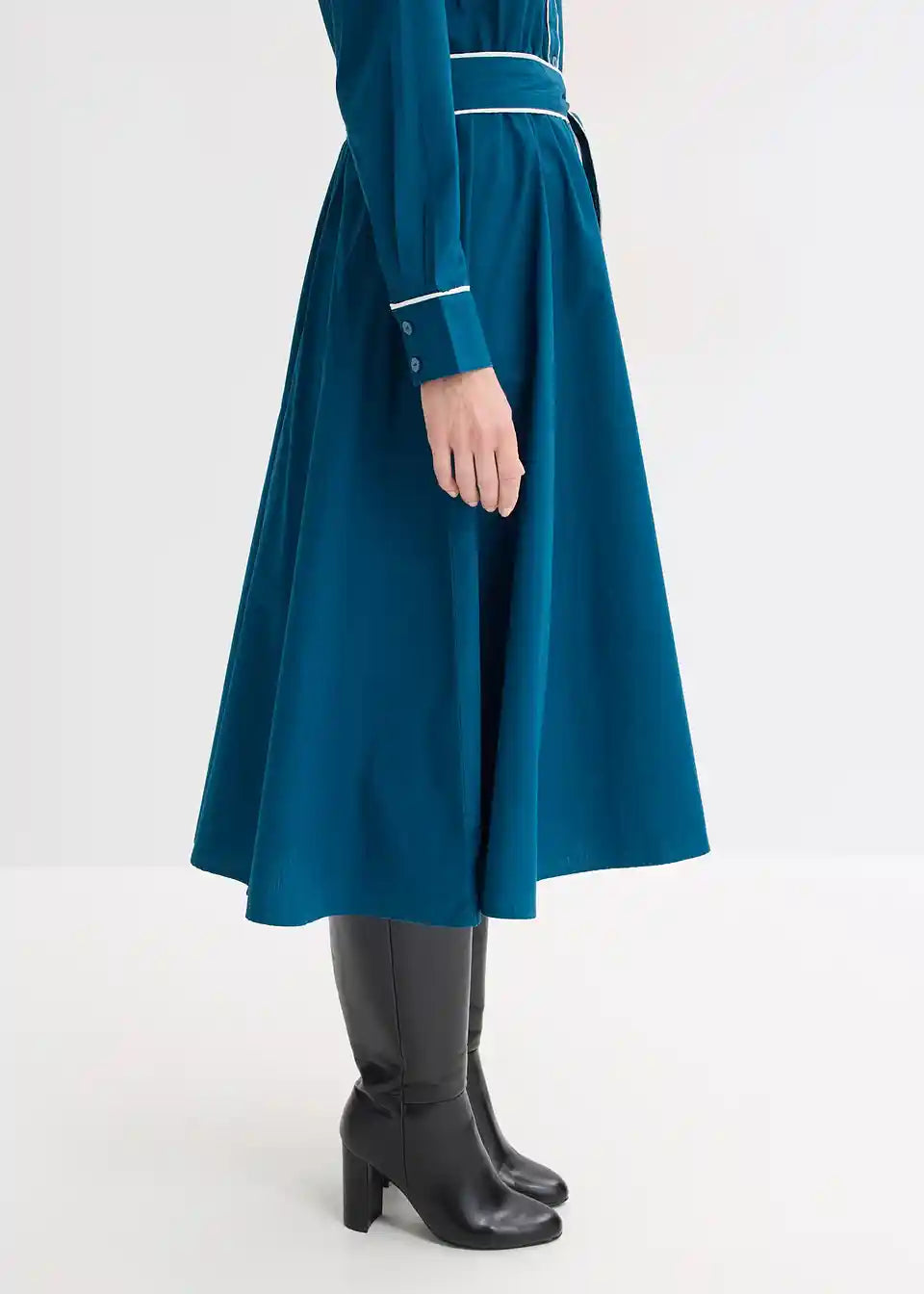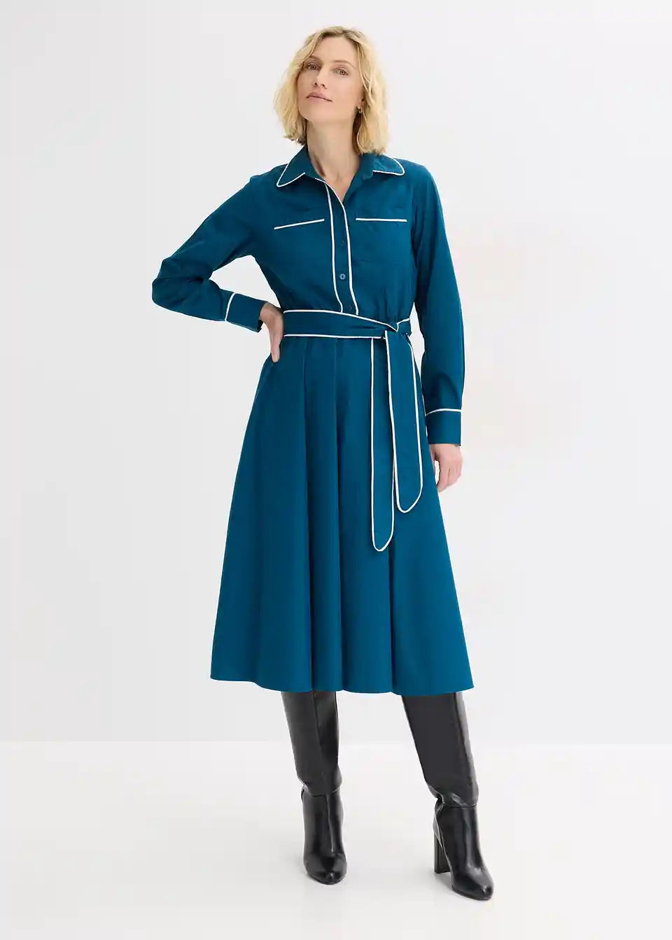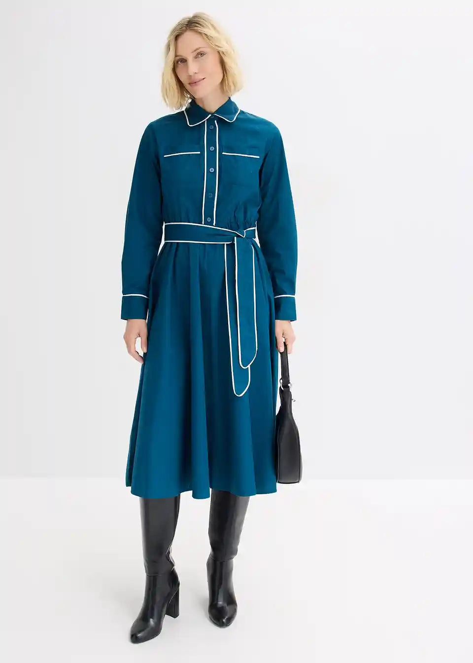Stilna srajčna obleka z ljubkimi kontrastnimi paspulami